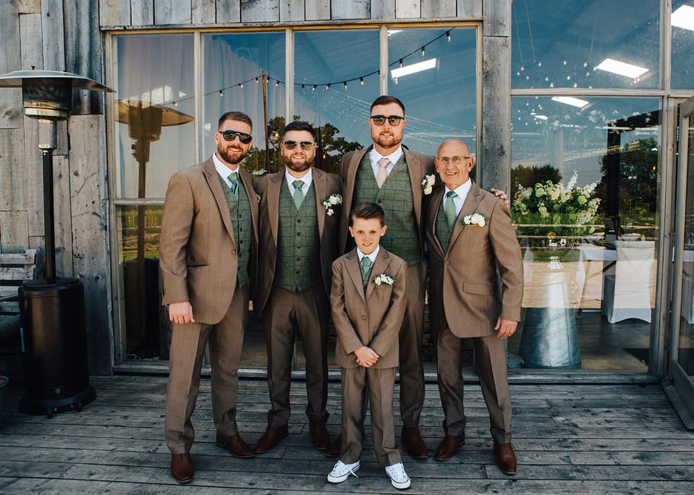 Daniel’s and groomsmen’s suits were from Larry Adams, West Kirby. Our wedding had a country garden/meadow theme with neutrals and touches of lemon to brighten it up. The main colour palette was green and cream. The rustic barn provided the perfect backdrop, seamlessly flowing into the outdoor space.