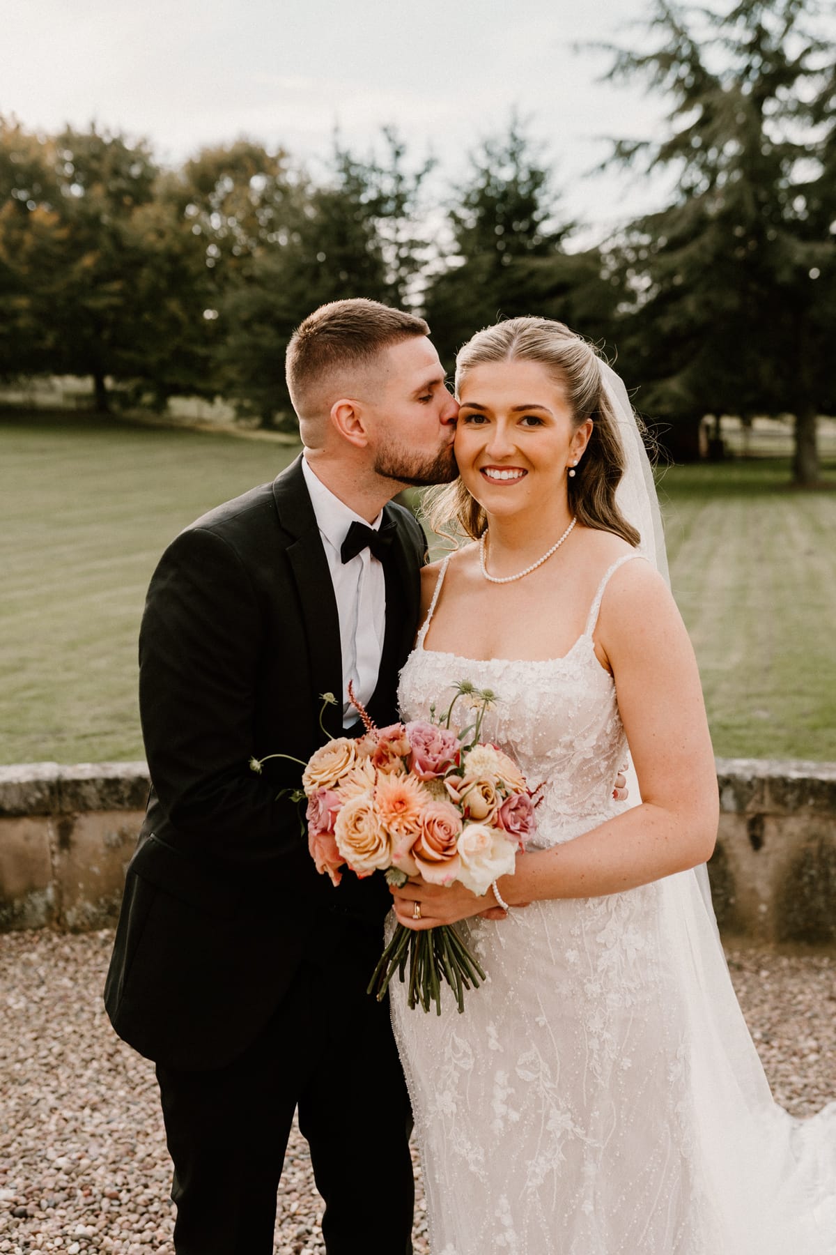 Our florist was Linden Lea, a family-based florist! We chose a muted autumnal palette—soft peaches, toffees, dusky pink, and ivory. I’m a nurse, and it was a patient who gave me this inspiration—clearly, I talked about the wedding too much! I wanted my bouquet to have a garden-style look, not too arranged—like it could have been picked that morning.