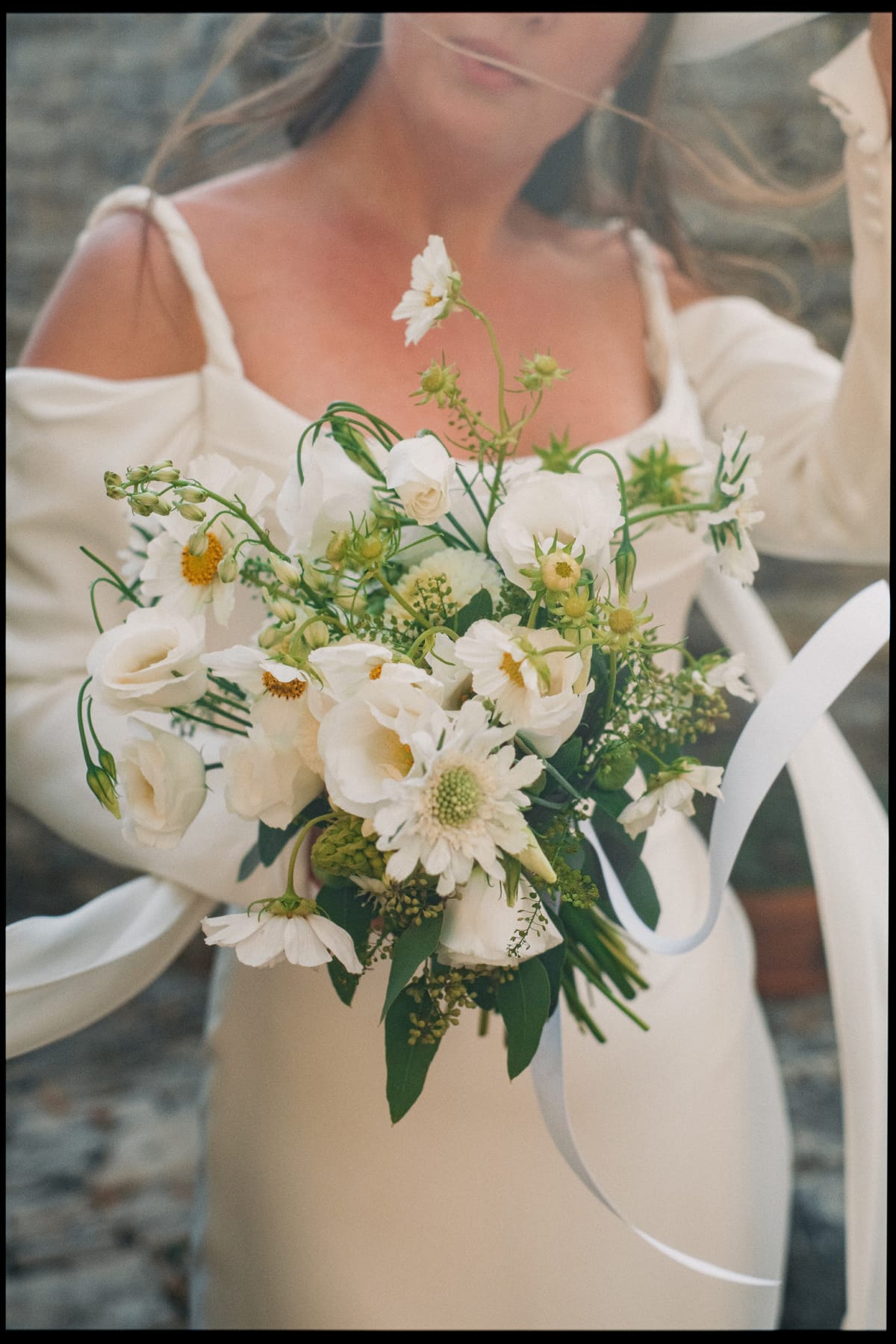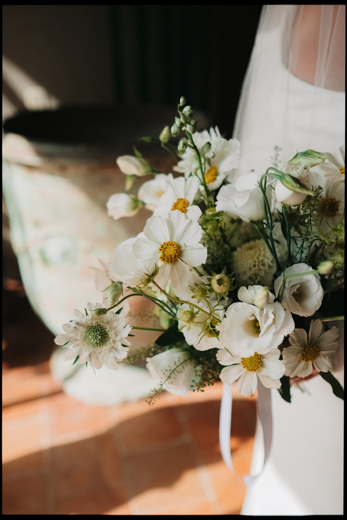 Our florist was L’Atelier de Matisse, and she came highly recommended by friends who got married in the same region. From the first conversation, we felt like we were in great hands. Her work is so thoughtful and artistic—she brought such life to our day. My bridal bouquet was especially stunning, with soft whites accented by pops of vibrant yellow. It was like carrying a little piece of sunshine down the aisle.