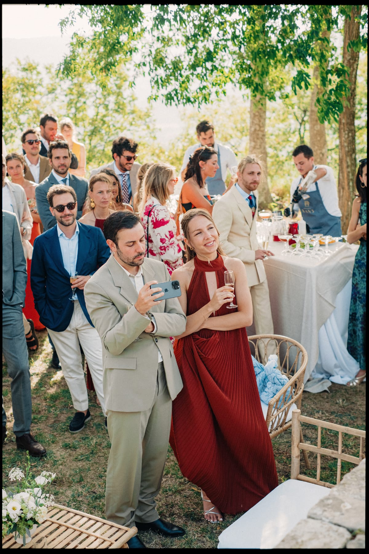 I wore the Jacquetta dress by Savannah Miller, a design that perfectly balanced elegance and practicality. The detachable sleeves were a dream—it felt like I had two dresses in one, which added a playful twist for an effortless transition from day to night. My husband wore a tailored suit from Eredi Chiarini, a little boutique he discovered on a father-son trip to Florence. Both choices felt so personal and special, like they carried a little extra meaning for our day.
