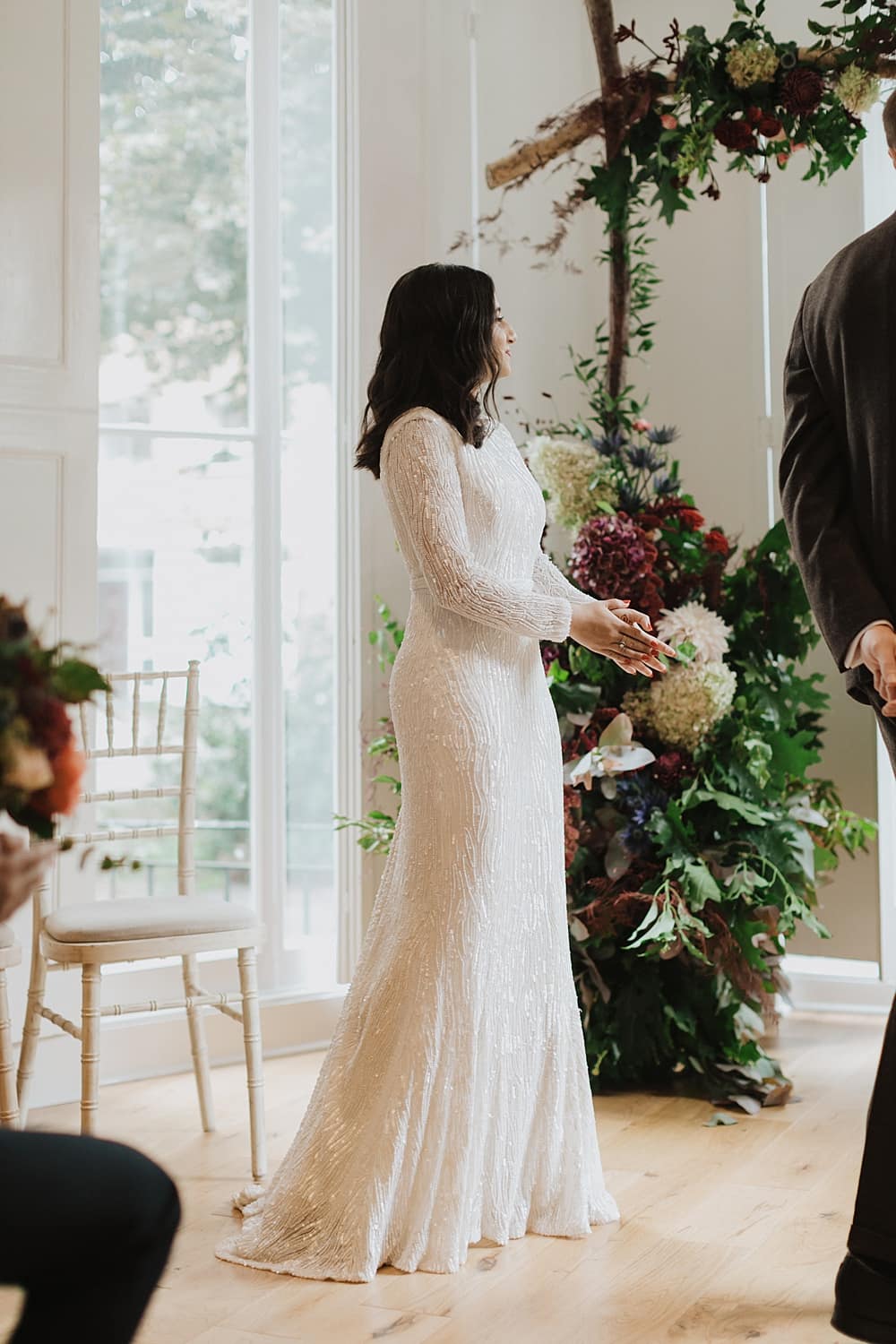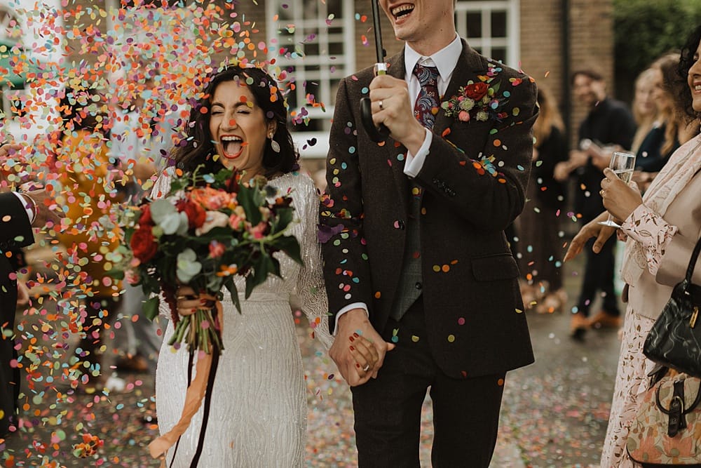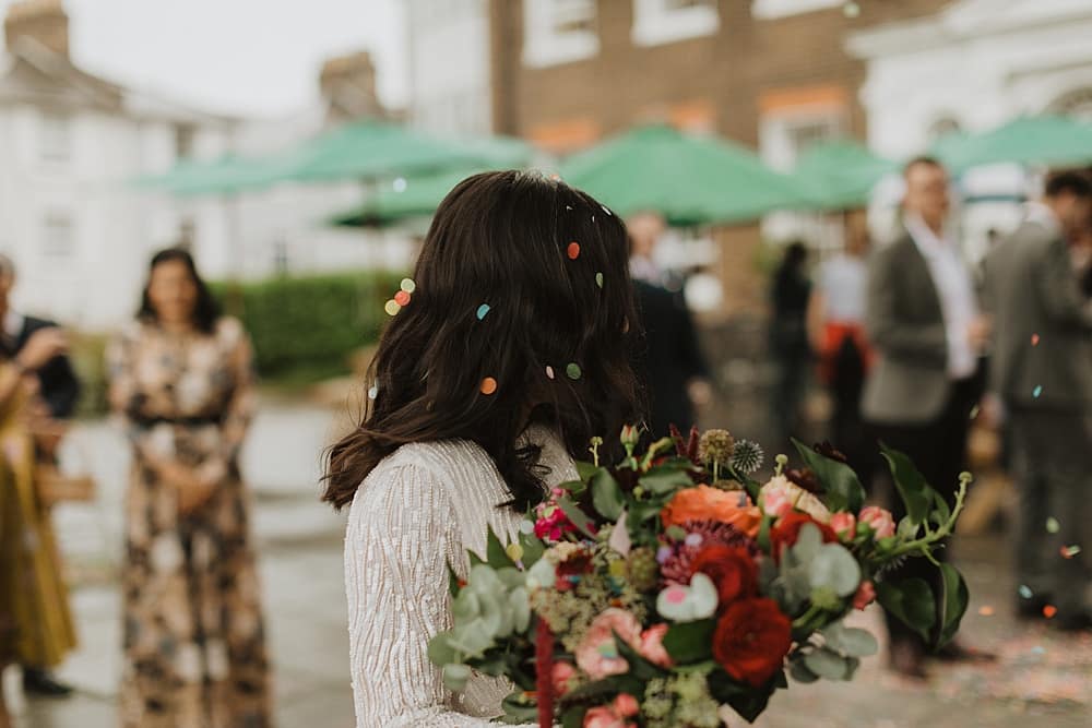 I think this pretty much sums up today’s real wedding feature – Amita & Andy created a beautiful celebration at a local London spot, with winter-inspired colours, a riot of flowers and foliage, and their closest friends and family around them.