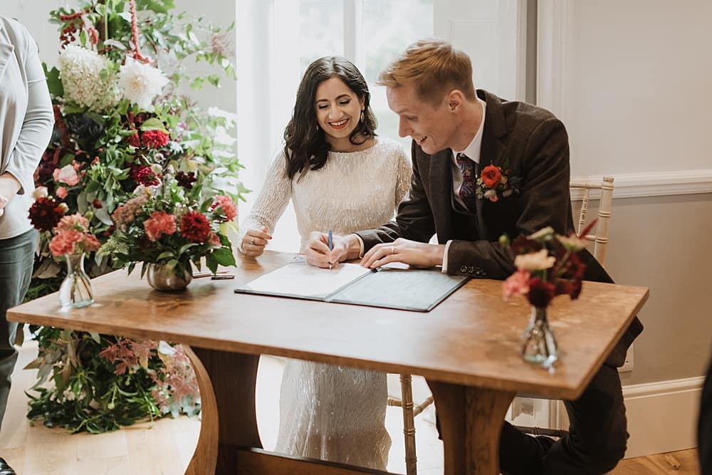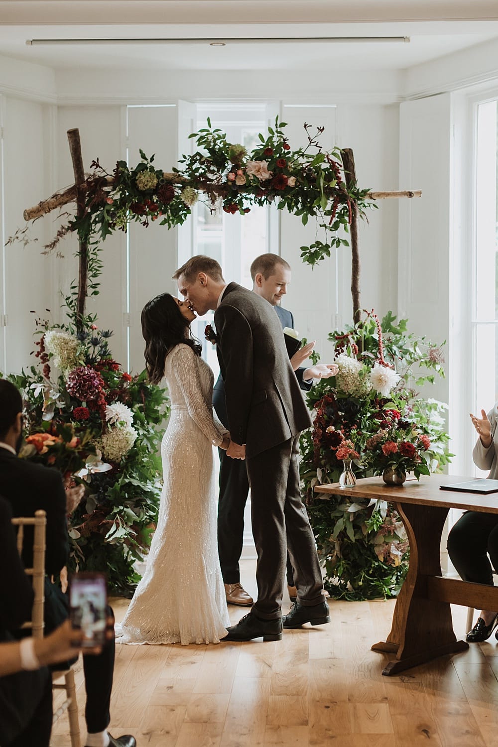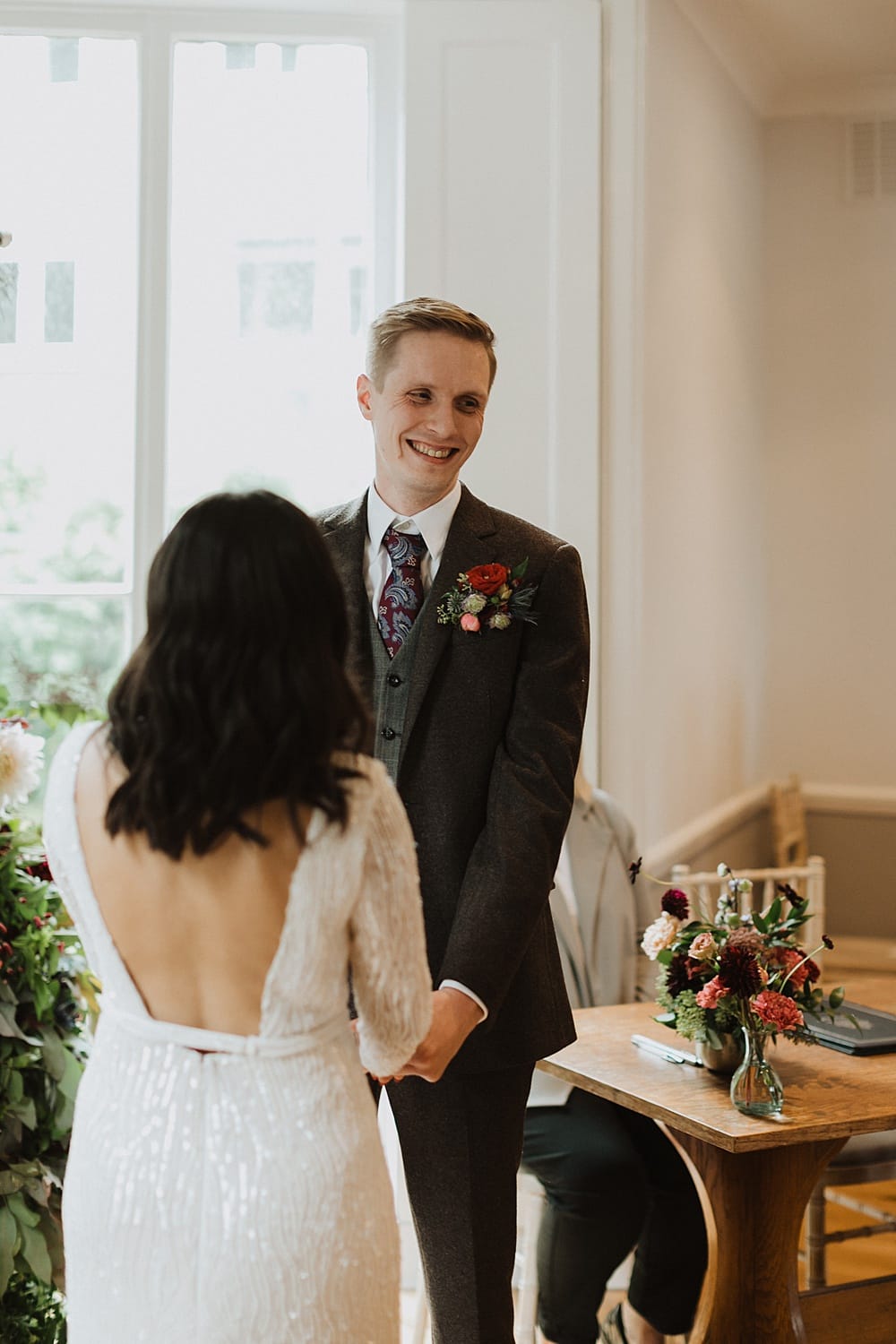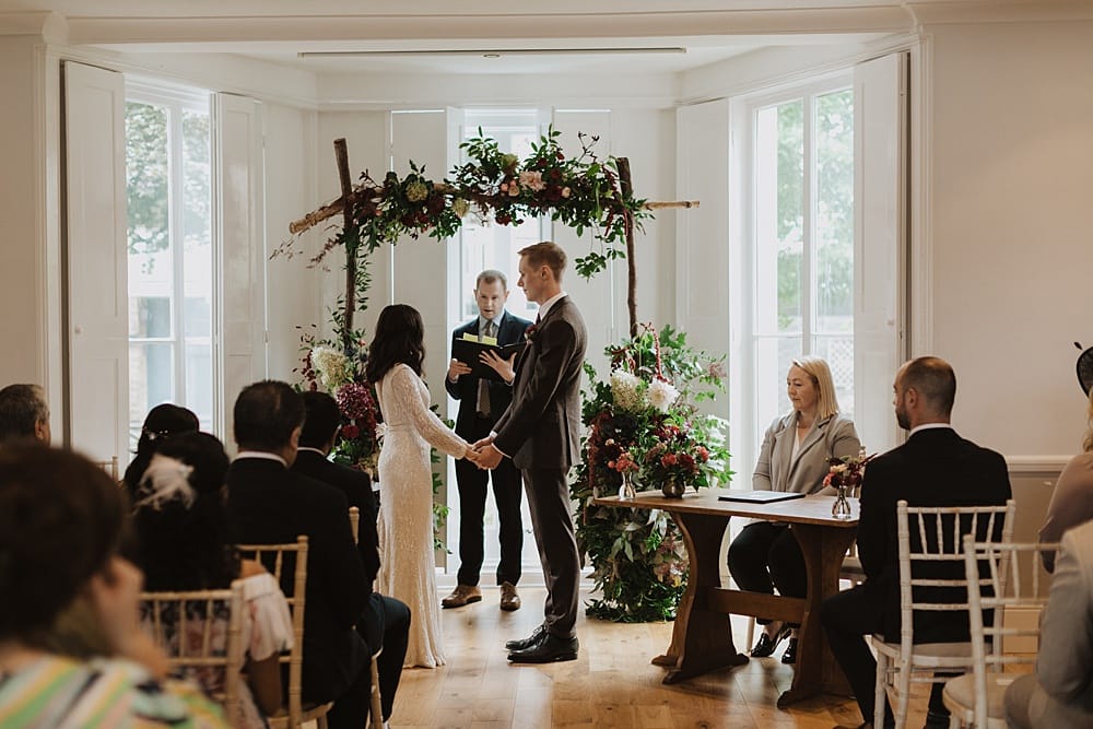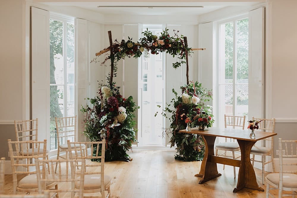 Philippa Smith, of Francis Smith Flowers was our florist. We loved her style and she worked with us to carefully decipher what was in our heads to bring it to life. We decided on jewel toned flowers for my bouquet, the groom’s pocket garden (an amazing alternative to buttonhole), several standalone arrangements and a beautiful ceremony arch. We also had a foliage arch for the riverside windows and foliage dotted around other elements of the room.