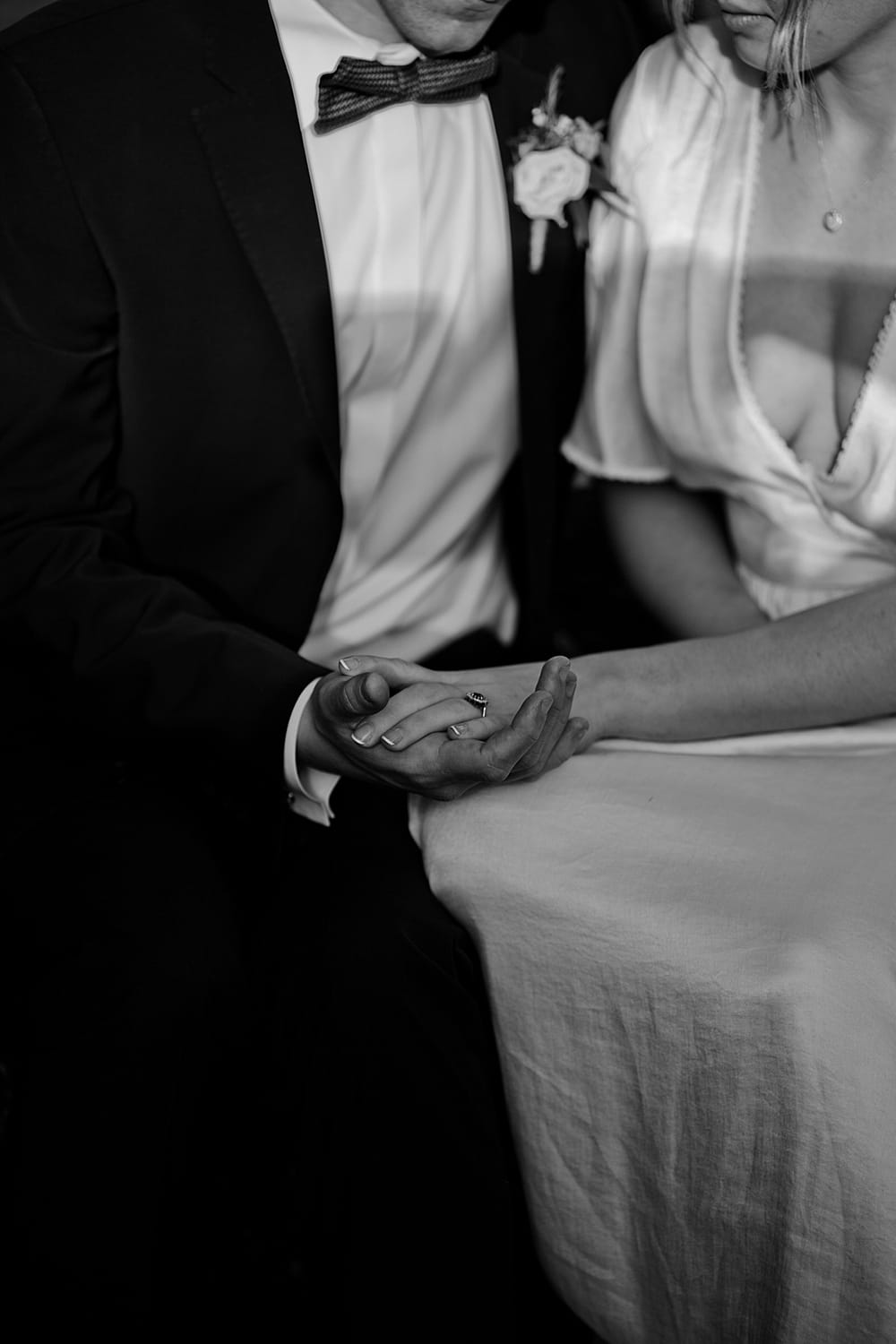 Wanting to capture a simplistic elegant and classic style that still creates some personality. The sleeves of the wedding dress are perfect to bring movement and a little fun! We also added an embroidered ribbon for a little statement piece with personalisation as a hair accessory that gives a great alternative to a veil and still keeping it simple and elegant.
