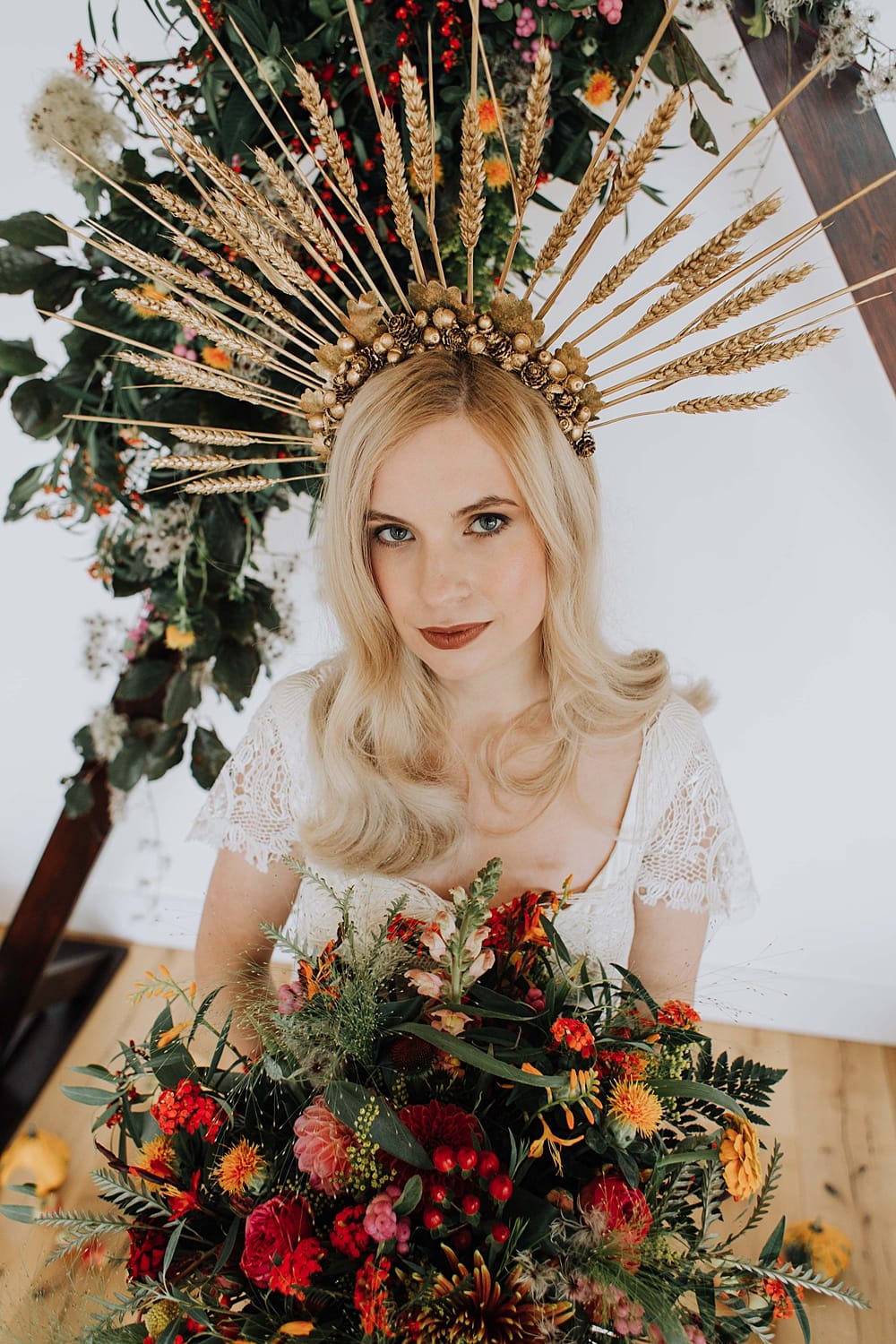 I absolutely adore this feature; the rich autumnal colour palette, the stylish bridal style, and of course that glorious golden crown. These beautiful images immediately make me want to skip ahead to all the gorgeous October weddings that will be coming up soon. Not long now…