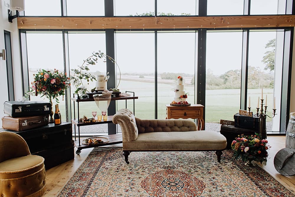 Amanda Winsor, a master florist, created stunning and wild foliage and floral arrangements to complement the autumnal theme and decorate the ever popular triangle arch. Ours was made by the ethical company Glas Events who try to reclaim, repurpose and recycle as much as they can within their event hire company.