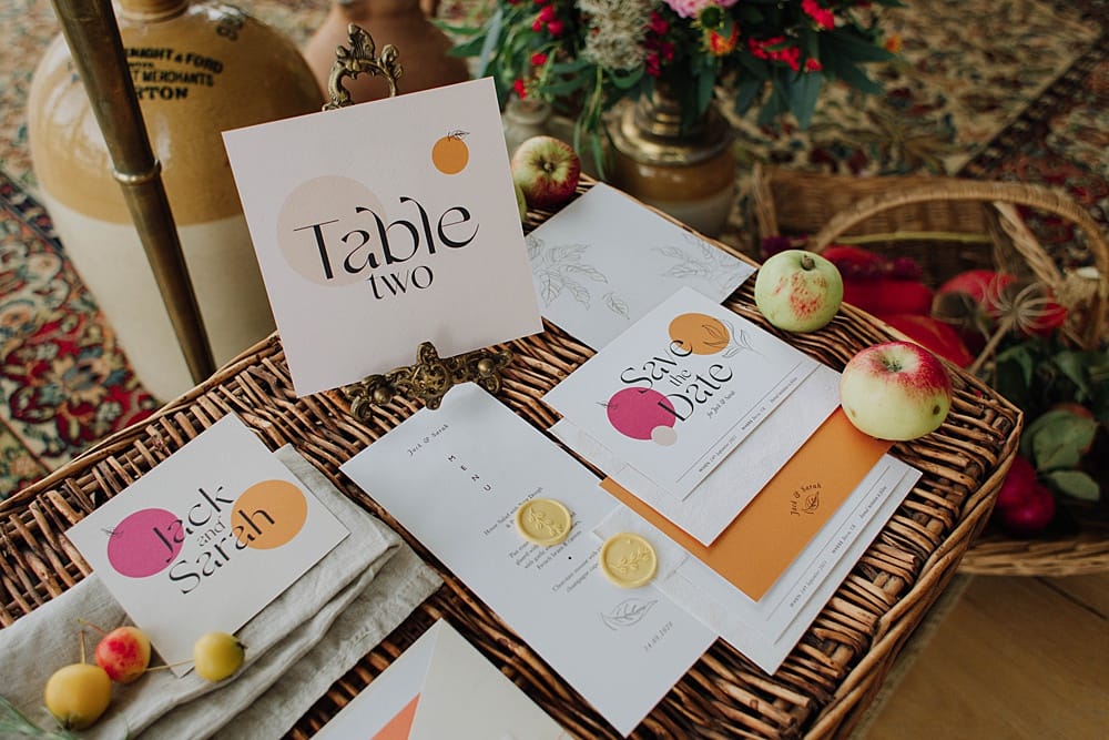 The stationery by Violet Paper Studio was created especially, and was magic to work with – she had truly understood and captured the brief perfectly – look out for the apple leaf illustrations she came up with – just stunning!