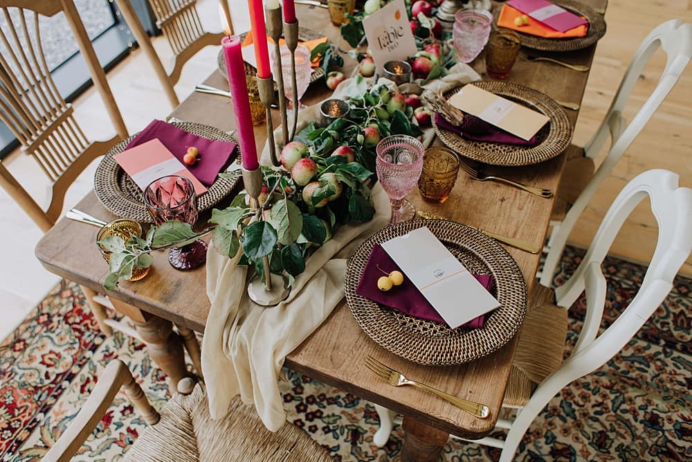 Lovers of colour unite! Bright, bold, clashing colours set off weddings in true style. So many little details throughout this editorial could be incorporated into a couple’s big day. For example, I’m a huge fan of using seasonal fruits in my styling – whether that’s apples in autumn like this shoot – or strawberries and lemons in summer – nature gives us so much to work with!
