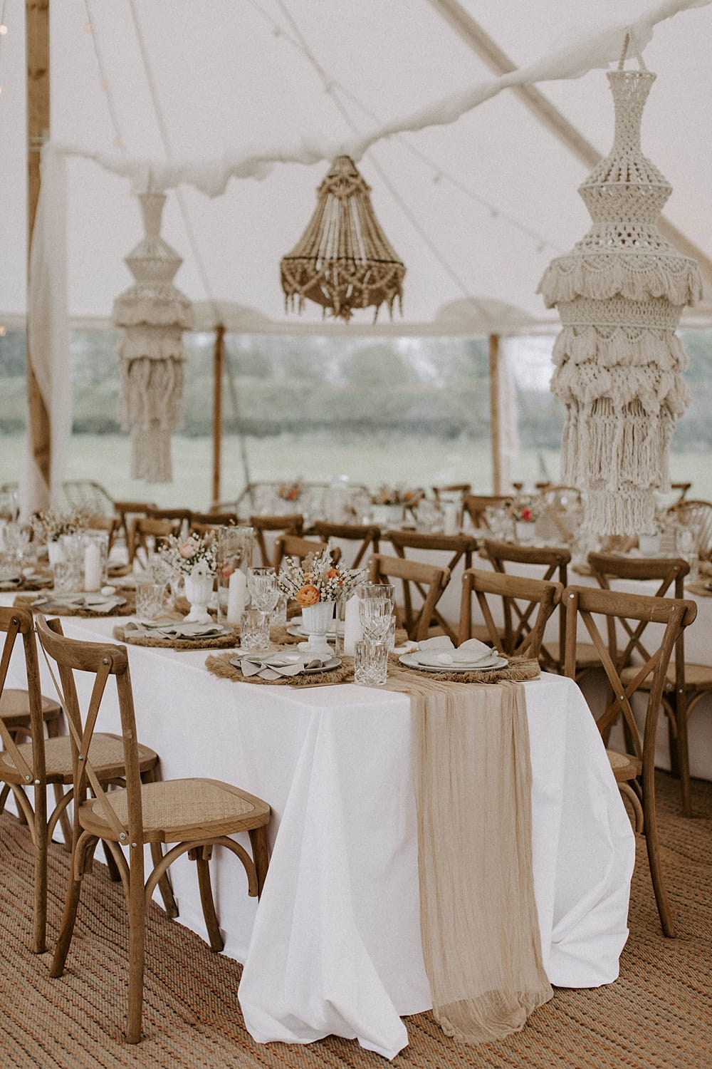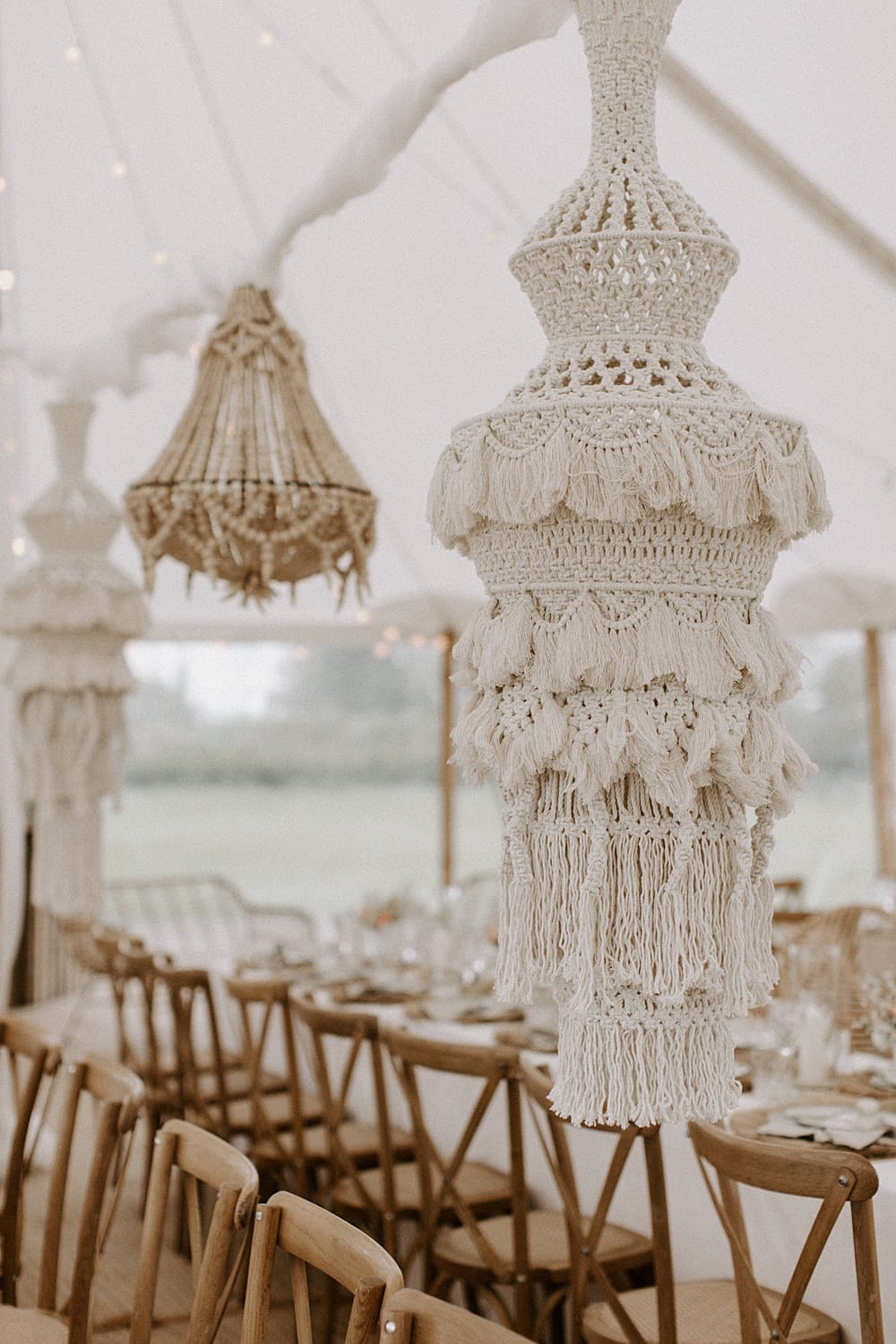 In addition to this, Edie from The Thread Tamer created two stunning bespoke macrame lanterns, which were a perfect fit. They hung alongside Cathy’s wooden beaded chandelier to create a show stopping hanging feature through the middle of the Sailcloth.