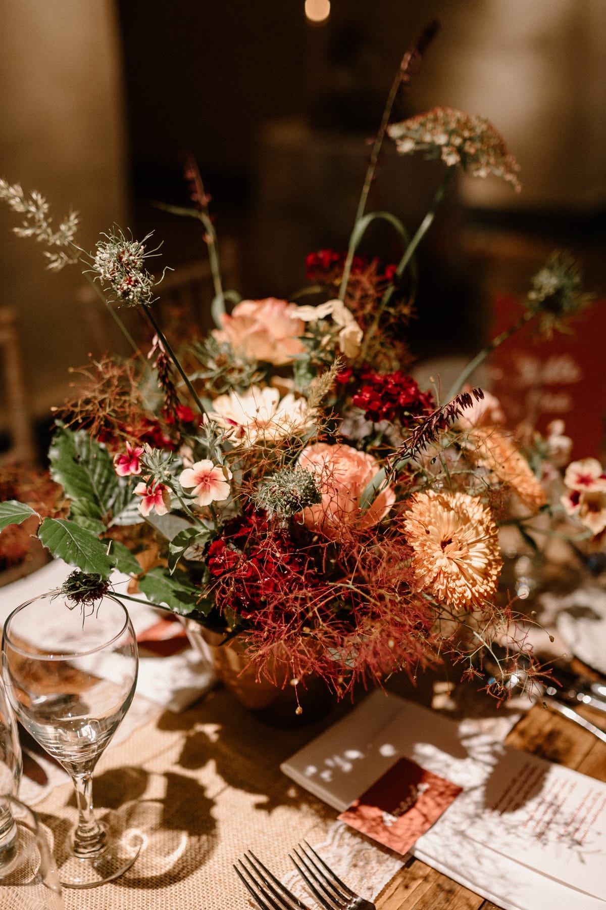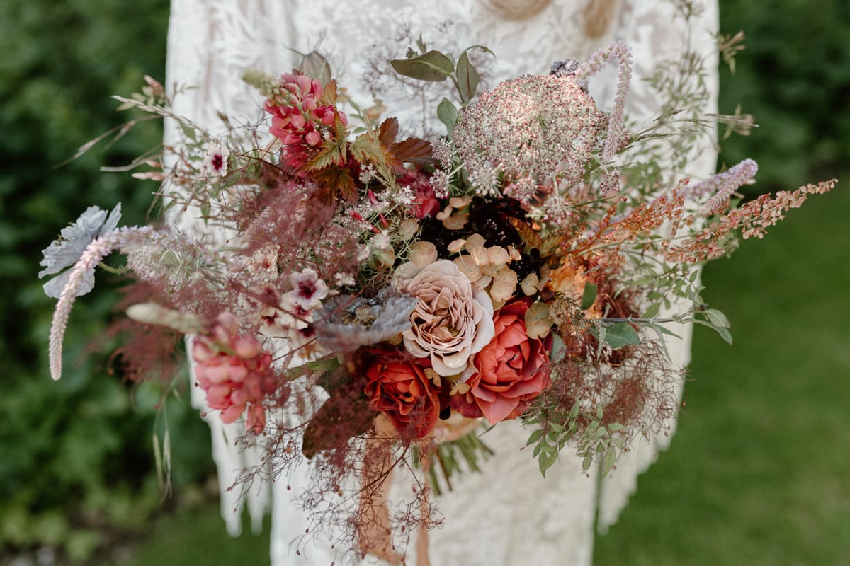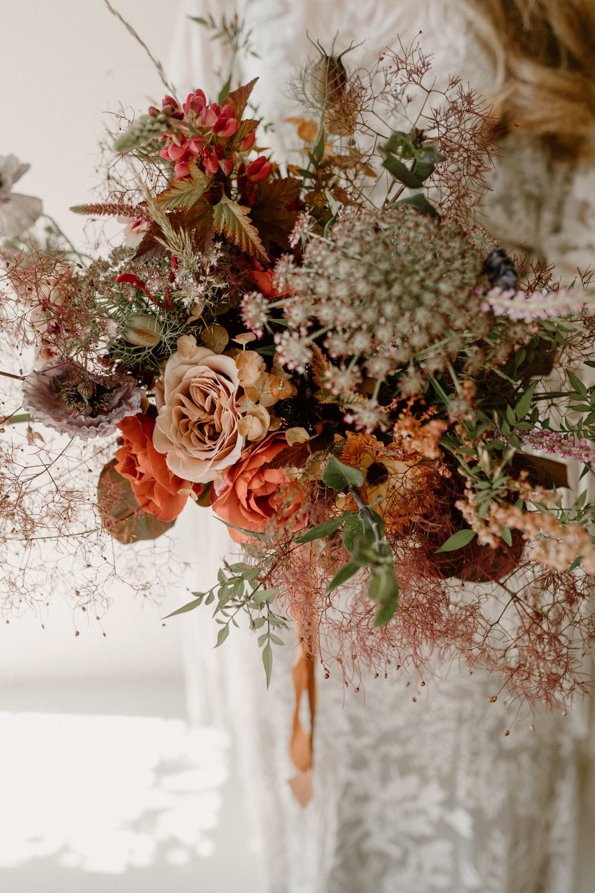 We captured the warmth and richness of late summer, using a palette of deep pinks, burnt oranges, rusty reds, warm browns, and rich copper tones, softened with muted greens and natural neutrals. These colours echoed the season’s abundance, from sun-faded petals to glowing sunsets. The late-summer light brought an extra layer of magic, illuminating the copper accents and enhancing the vibrancy of the florals. The result was a palette that felt warm, inviting, and perfectly in tune with the wild, bohemian aesthetic – a celebration of summer’s last golden weeks.