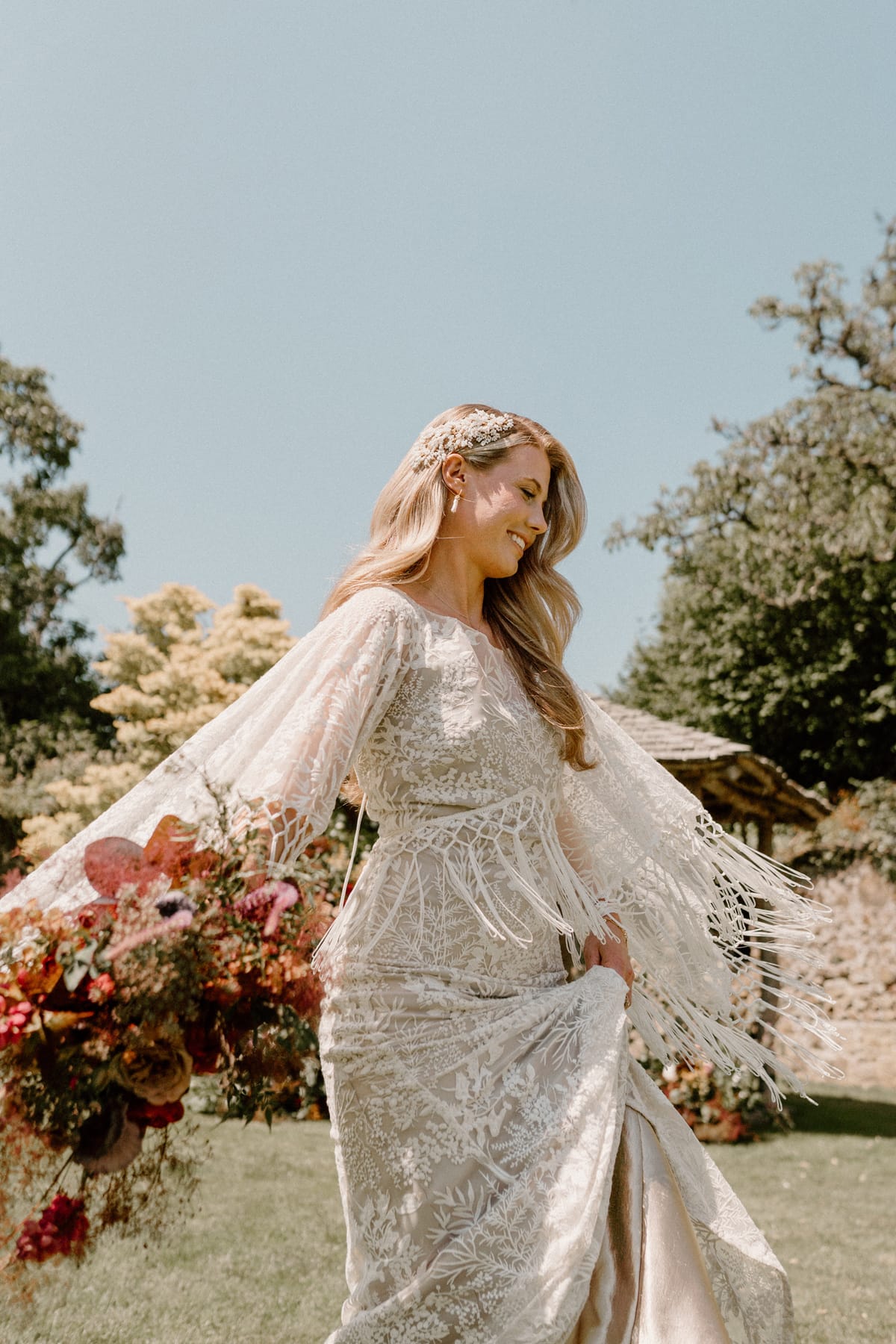 The shoot embraced a true Boho Luxe style – free-spirited yet refined, romantic yet grounded in natural beauty. We wanted to inspire brides and grooms who value individuality, artisanal details, and effortless elegance. Layering organic textures with elevated, hand-crafted elements, we created a mood that was joyful, expressive, and rich in personality. The theme centred on relaxed luxury – abundant flowers, barefoot moments, golden hour light, and spaces styled to feel both unstructured and beautifully curated. Every scene celebrated the harmony between the venue’s rustic charm and the elevated creativity of our handpicked suppliers.
