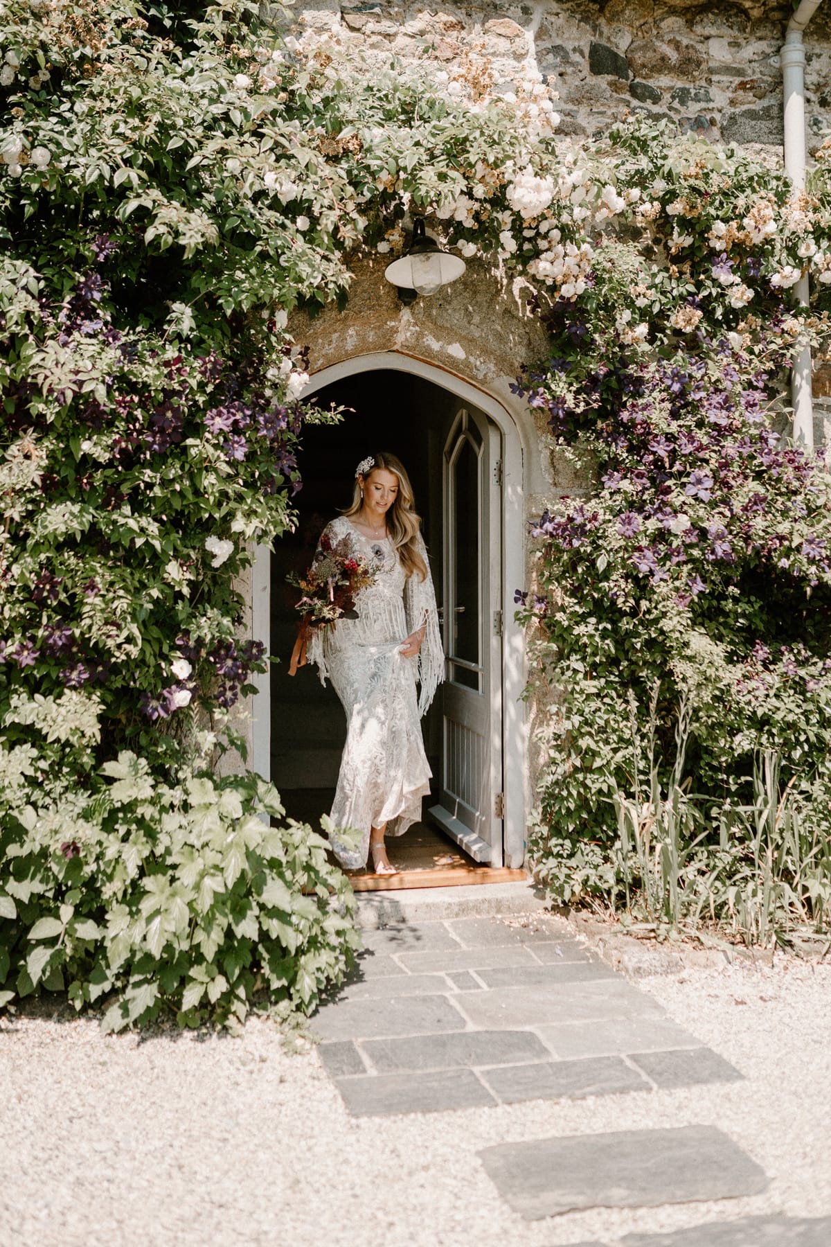 Designed to inspire couples seeking a wedding that feels both free-spirited and refined, the shoot layers organic textures with hand-crafted details to create a mood that’s effortless, expressive, and full of personality. With rambling roses, copper accents, and gowns handmade in Devon, it’s a true celebration of local artistry and these last golden weeks of summer.