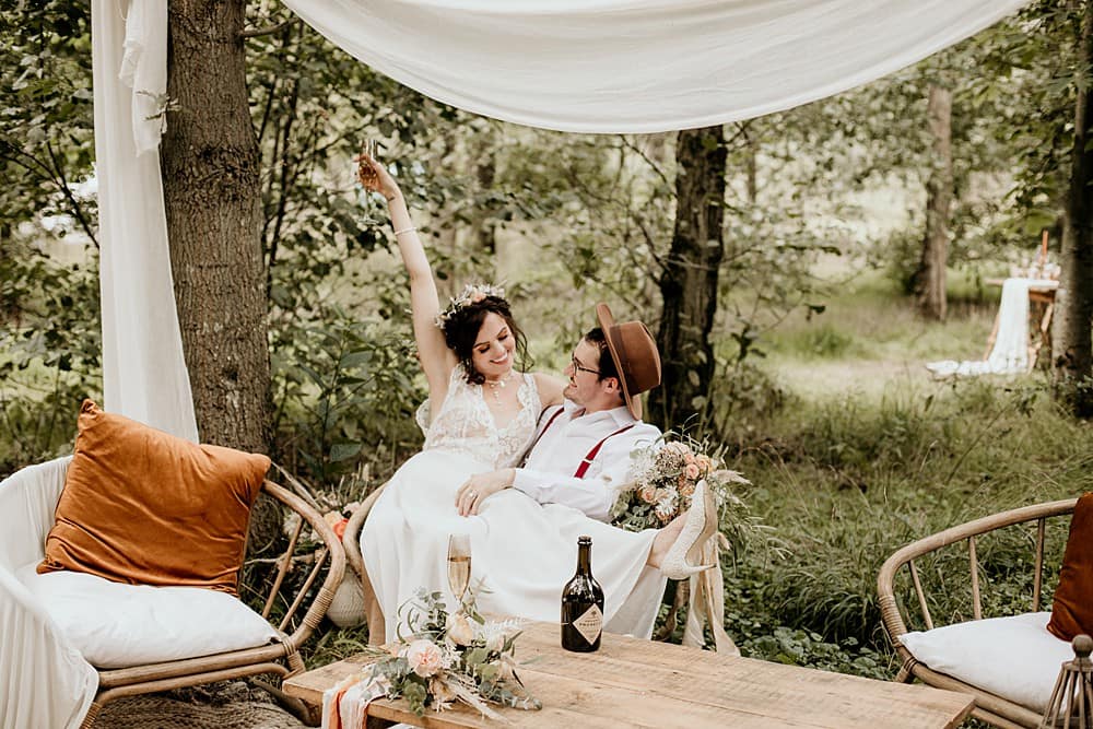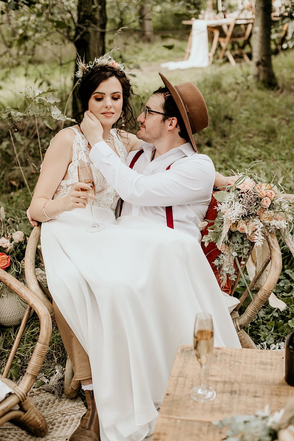 We hope that couples who are looking for a free-spirited, relaxed and intimate wedding can look at this shoot and take inspiration from it; look to their surroundings for inspiration on colour themes and textures to create a truly cosy, layered, boho woodland style wedding.