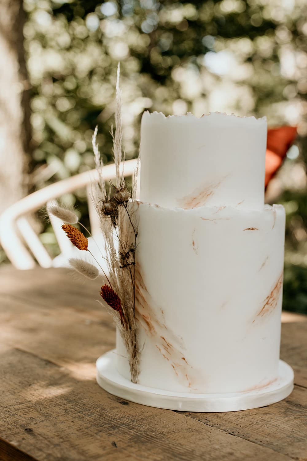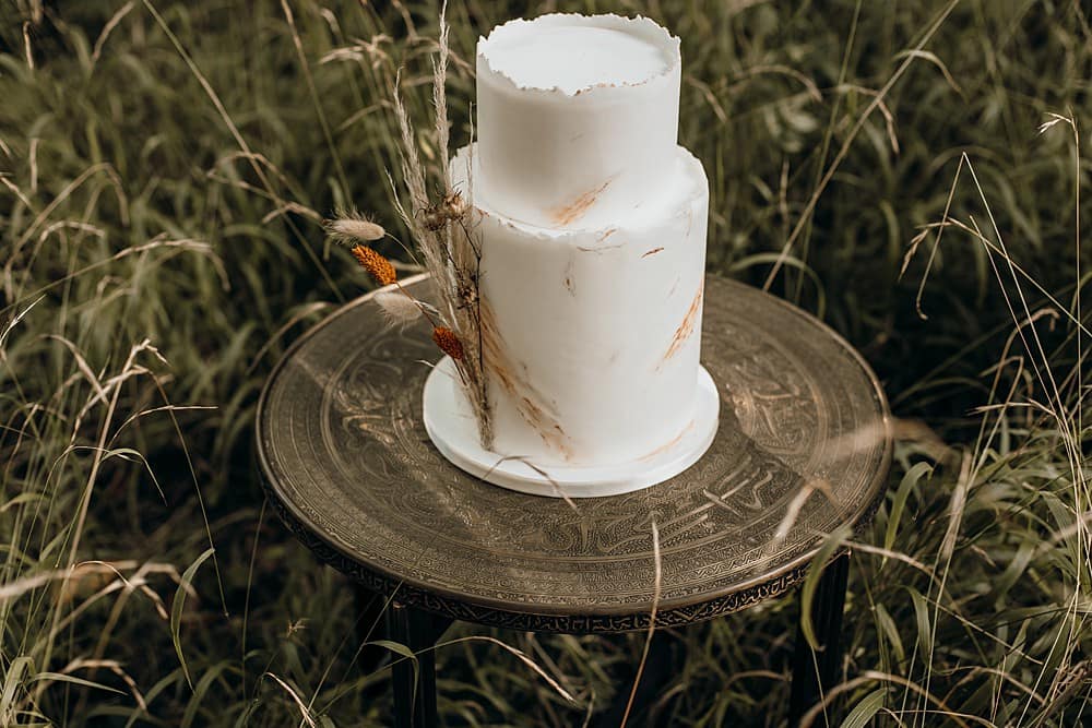 Sarah, Heart and Soul Cakes, created an understated ivory two-tier cake finished with a few dried ‘bunny tails’. The cake looked perfectly at home in the long grasses of the Orchard.