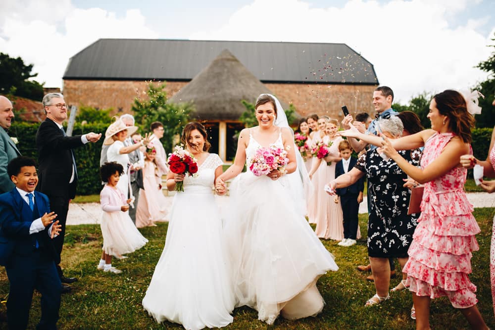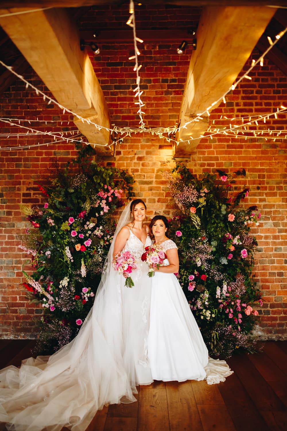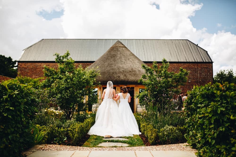 Two brides… two dresses! Briony brought her dress locally in Devon from Champagne & Charlotte. And I bought mine at home in Leicestershire from a small boutique shop called Bradgate Brides. Both very different dresses yet we managed without knowing to complement each other. We both accessorised with hair pins, Bobby Pin supplied beautiful hair pins that complemented my simple white dress.