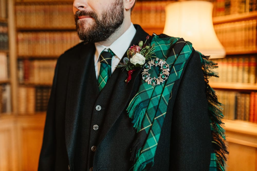 We shared many special memories from a previous trip to Scotland together, so we knew we wanted it to be there rather than in the US. Once we decided that, we figured if we were going to have a destination wedding, we might make it as much of a fairytale as possible for our guests since they’d be travelling such a long way. We’re both hugely into history and medieval stories, so we were looking for something that would capture the timelessness of the moment. When we saw pictures of Cluny Castle, with those beautiful turrets and the stunning chapel inside, it was everything we were looking for. Seeing it in person was even more breathtaking, especially the little details and decorations throughout each room and how well-maintained and preserved everything was.