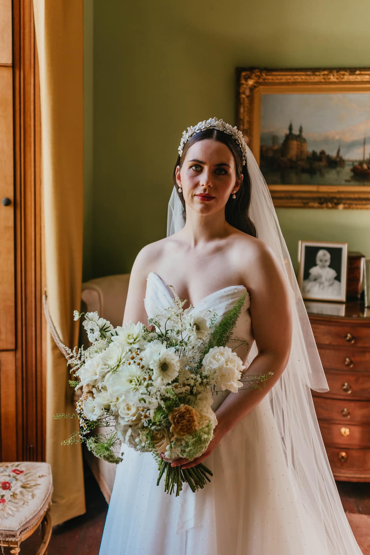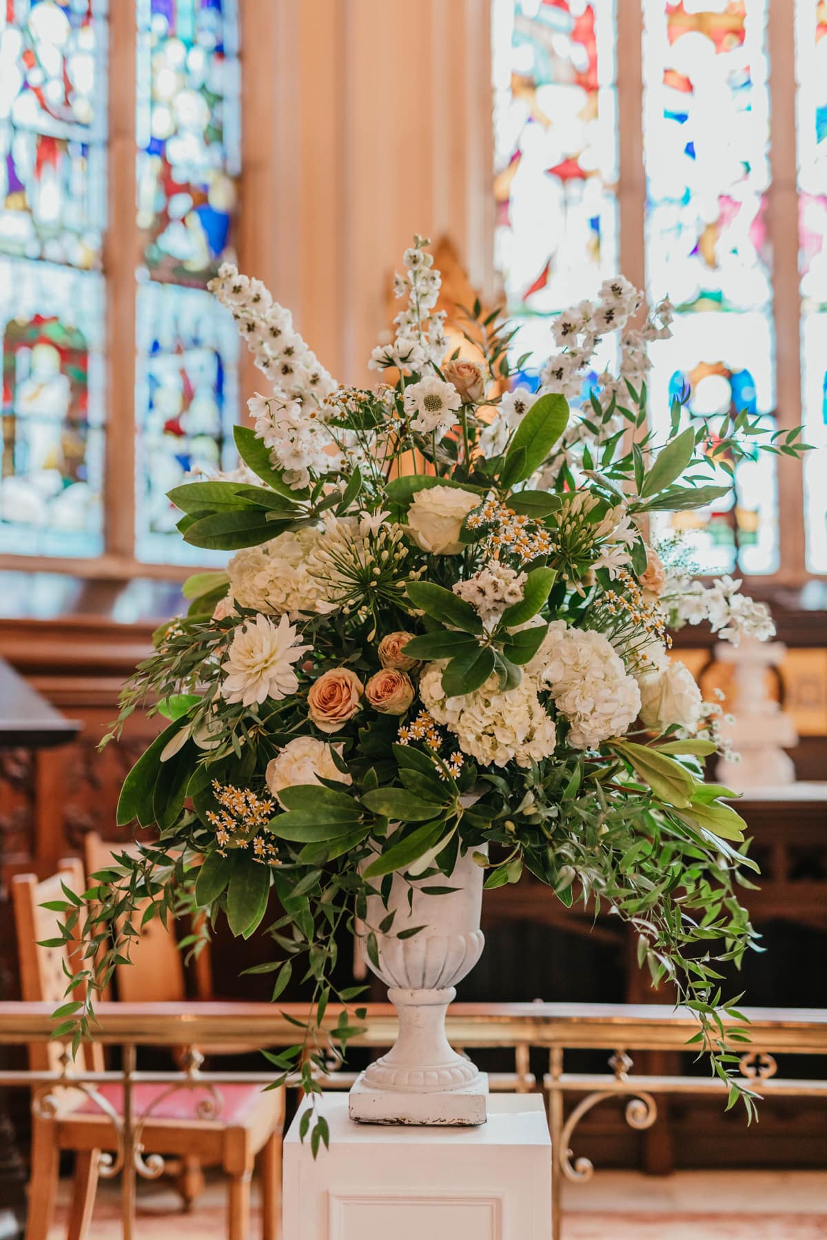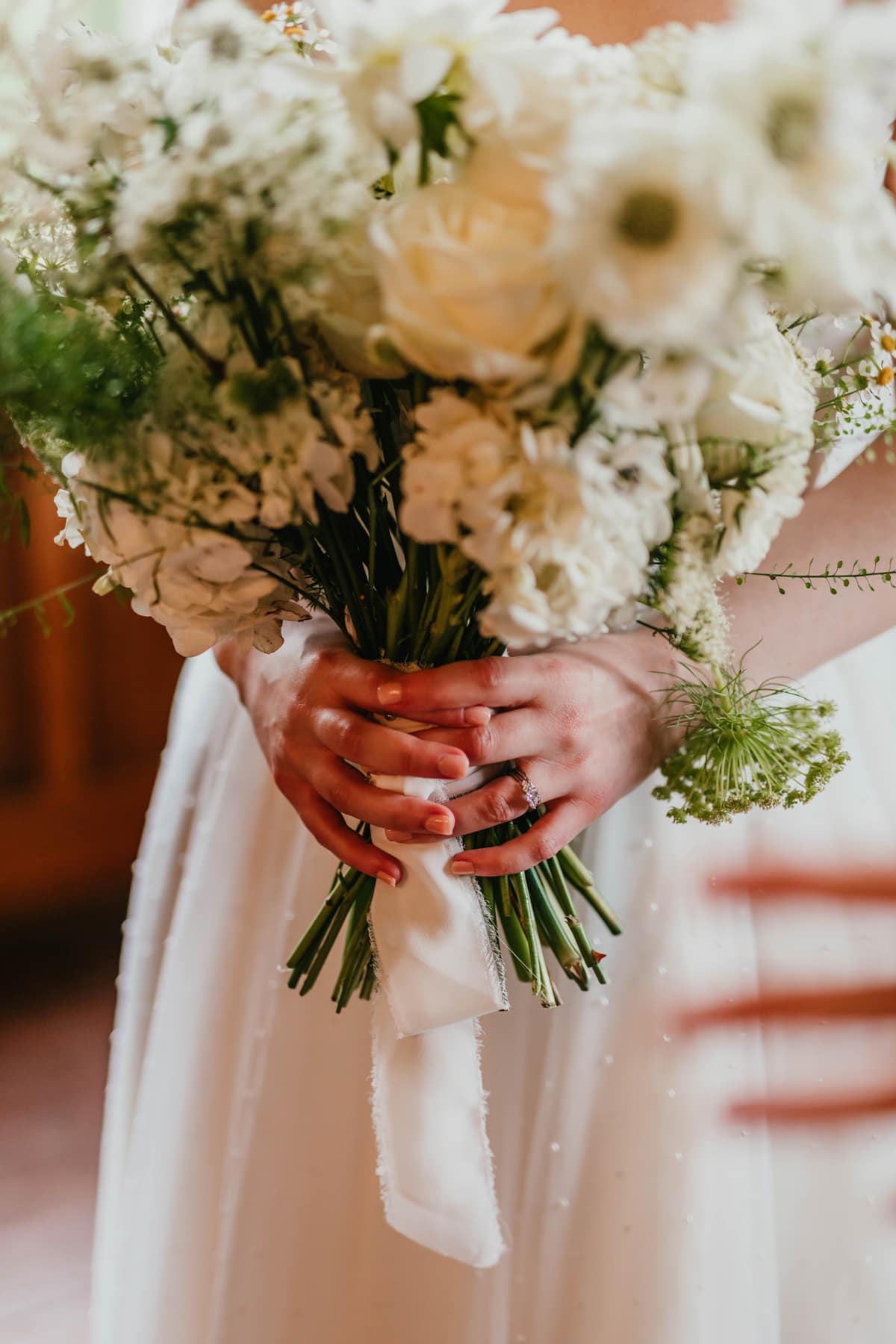 We wanted quite a natural colour palette with summery tones of white and green. We were looking for the flowers and foliage to be textured and whimsical, like a meadow, to create a light and airy feel.