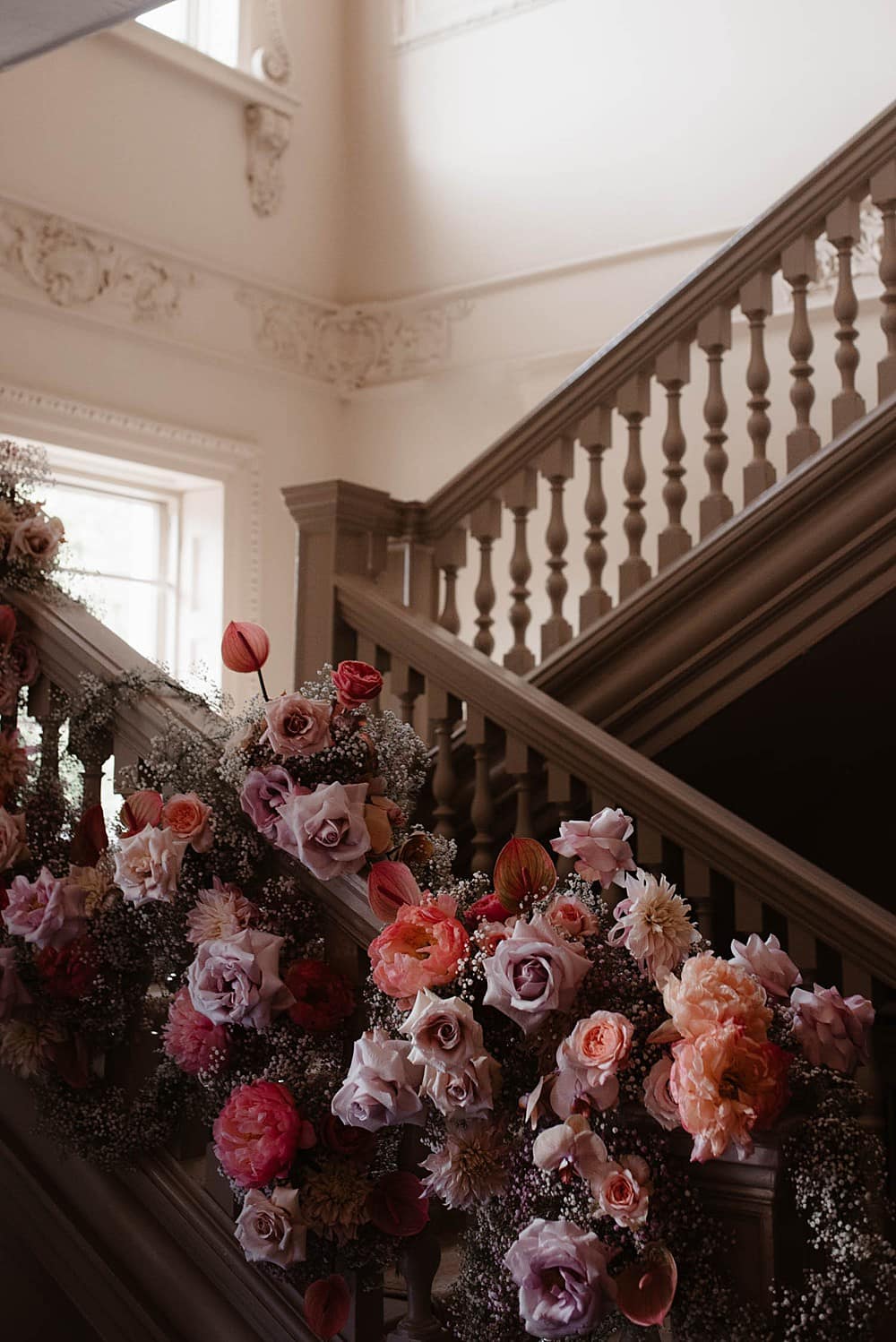 We wanted the vibe of our wedding to be relaxed, fun, informal and colourful – like a really great summer garden party. Our dress code was ‘sharp + summery’, and people came in a variety of amazing prints and florals. Mrs Hoare works in fashion, so the aesthetics were very important and carefully planned! The focus of our styling was flowers and the colour scheme – we went for dusky pink as the primary colour of the day with pops of fuchsia and the natural greenery of the venue.