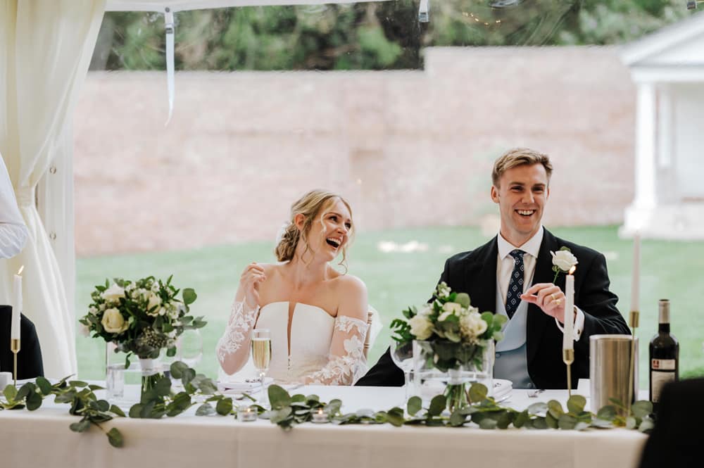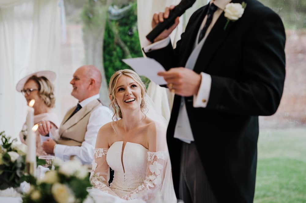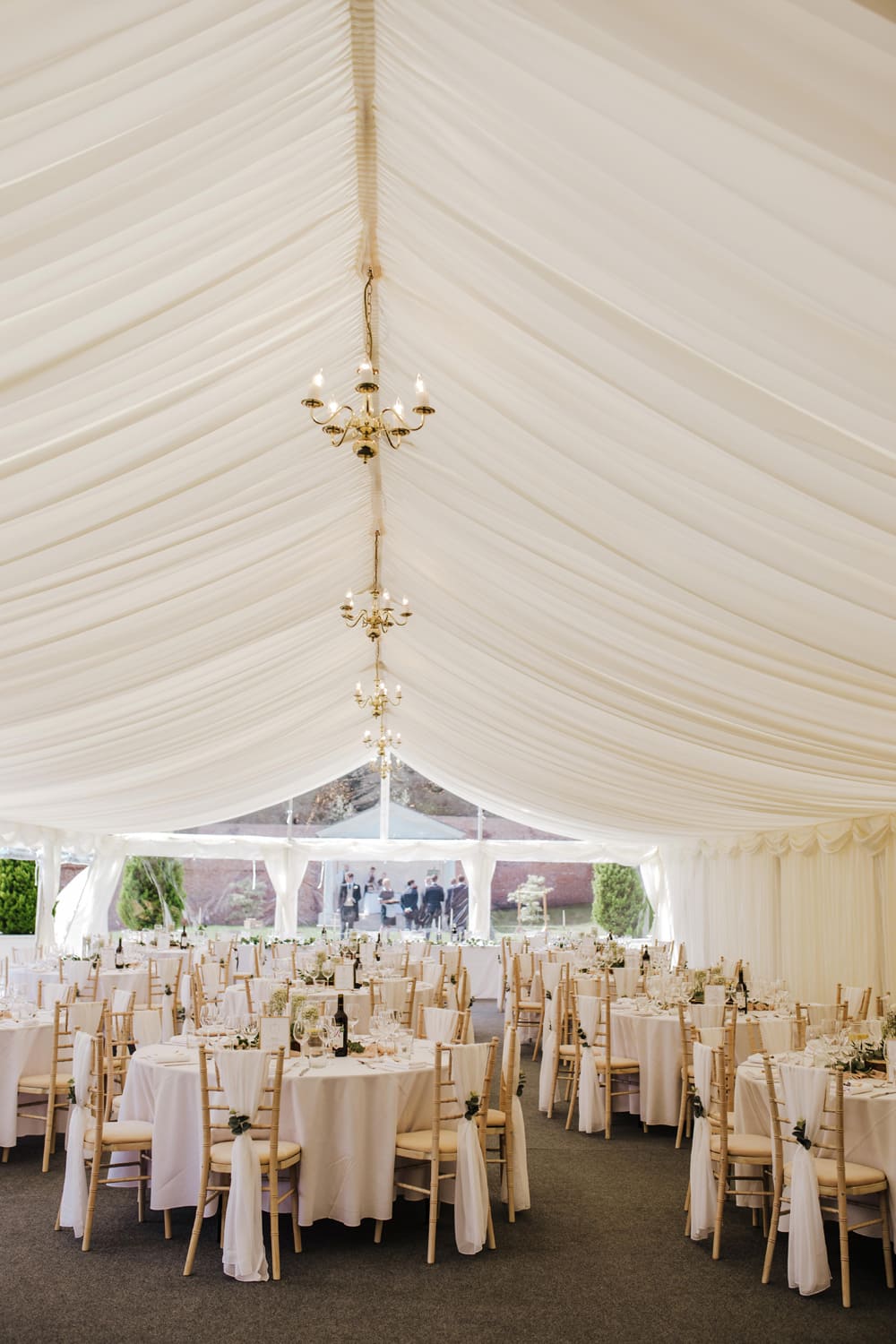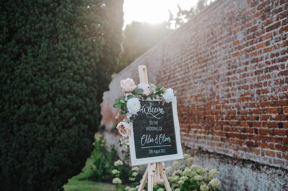 Our vibe was traditional English, white, garden summer wedding. With having such beautiful grounds and classic marquee we didn’t need to add much decor. We dressed the tables with simple foliage and candles, and we all helped to create our decorations and signs.