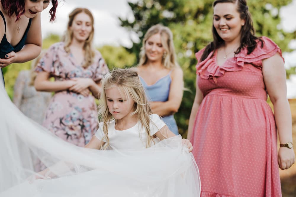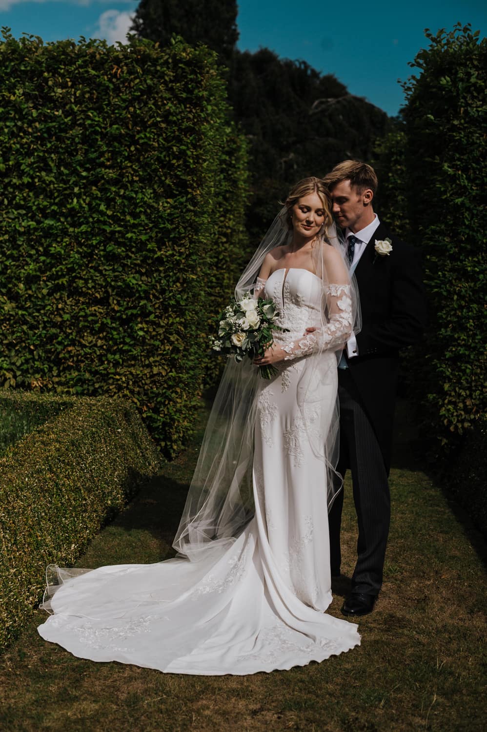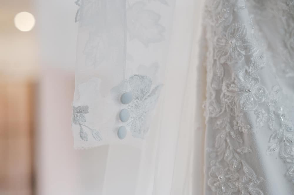 After trying on a few dresses and finding my style, I went to House of Snow Bridal and found the one! My dress was a strapless, fit and flare style with a long train, mostly plain with some lace and beaded detail. Perfect for a summer, garden wedding! I had a cathedral length veil and added customised detachable off the shoulder lace sleeves, which I then removed for the evening. My dress was so special to me.