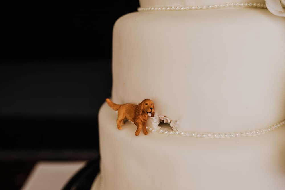 Our lovely friend Julie made a three tiered white iced cake with a lemon, chocolate and Victoria sponge centres. This was decorated with trailing white roses and a little personal touch of our Cocker Spaniel, Molly! This was a big hit!