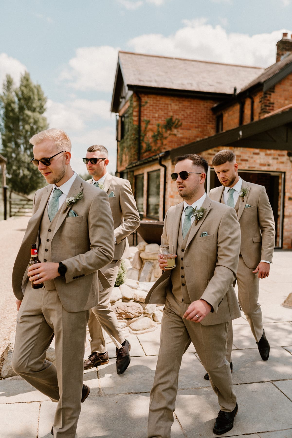 We wanted a summery, almost abroad feel, so Jake and his groomsmen chose their suits to reflect this. Our colour scheme was primarily white, but we chose a lovely sage colour for our bridesmaids, which looked divine in the June sunshine. My rule for my bridal party was ‘go with what makes you feel comfortable’. So, hair and makeup were all a matter of personal preference, and we chose shoes for comfort.