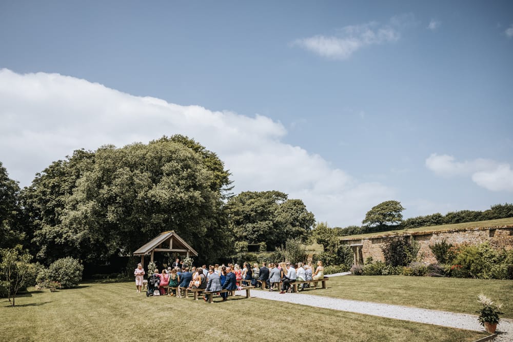 Miraculously, we had a sunny day, which was sandwiched between days of pouring rain. Our ceremony took place in the garden; we needed very little decoration due to the beautiful hydrangea bush and clever planting already in place at Launcells. I also have to shout out the rustic brickwork of the garden walls, as they make for a great backdrop in our wedding pictures.