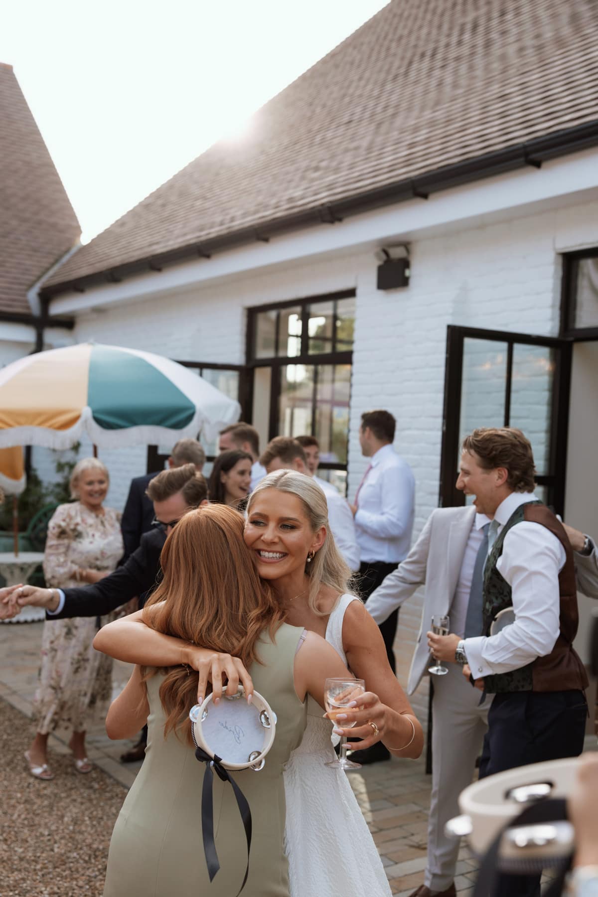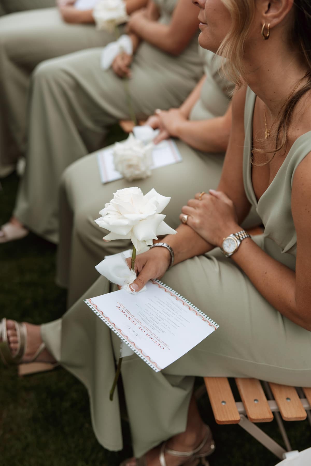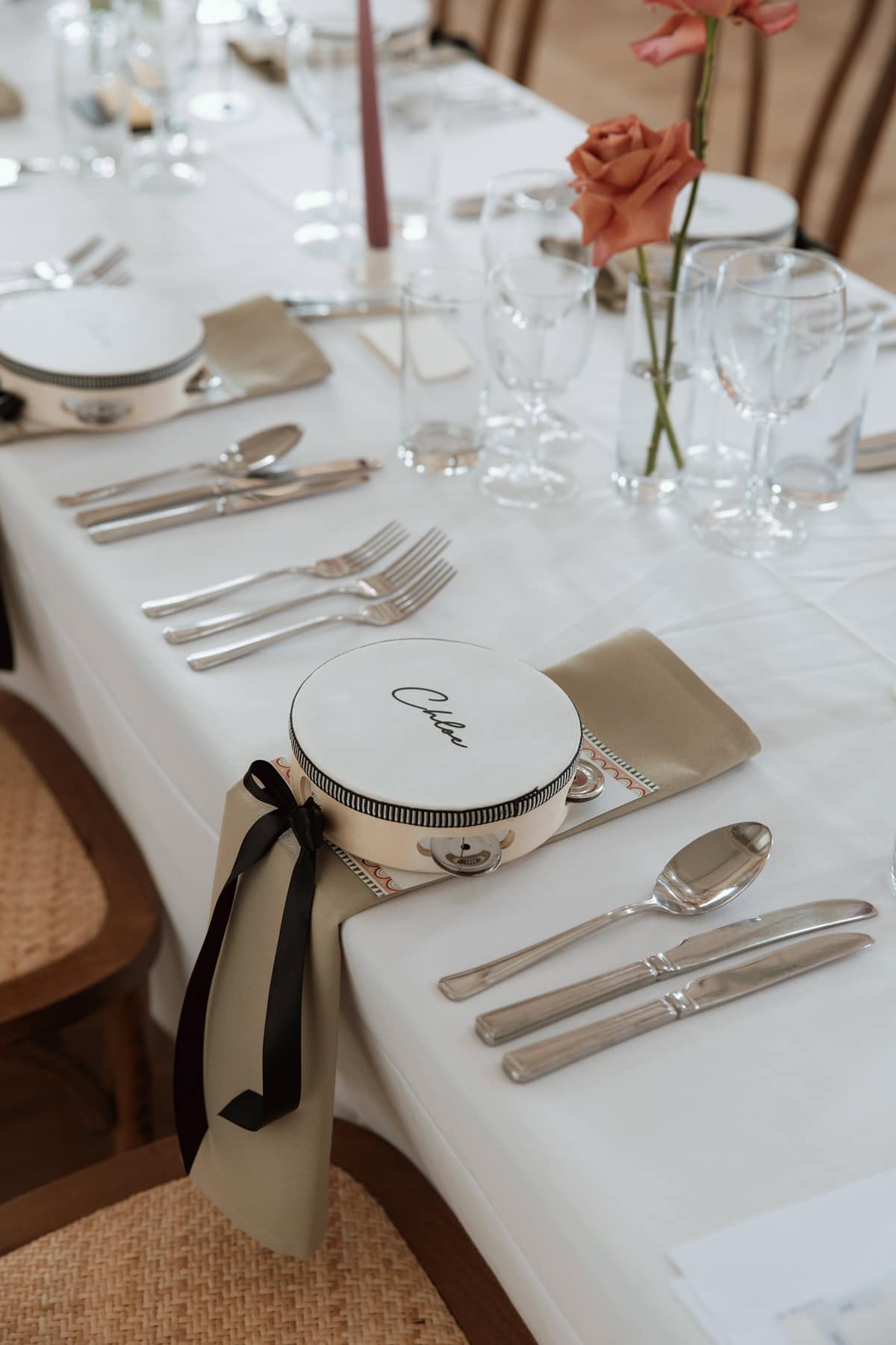 The styling really pulled everything together. A draped installation suspended from the trees became a striking backdrop for portraits, while lush florals—garden roses and textured greenery—brought romance into every space. The tables were just as thoughtful, with personalised tambourines at each setting. They weren’t just décor—they came to life during the speeches, filling the room with rhythm, laughter, and energy!