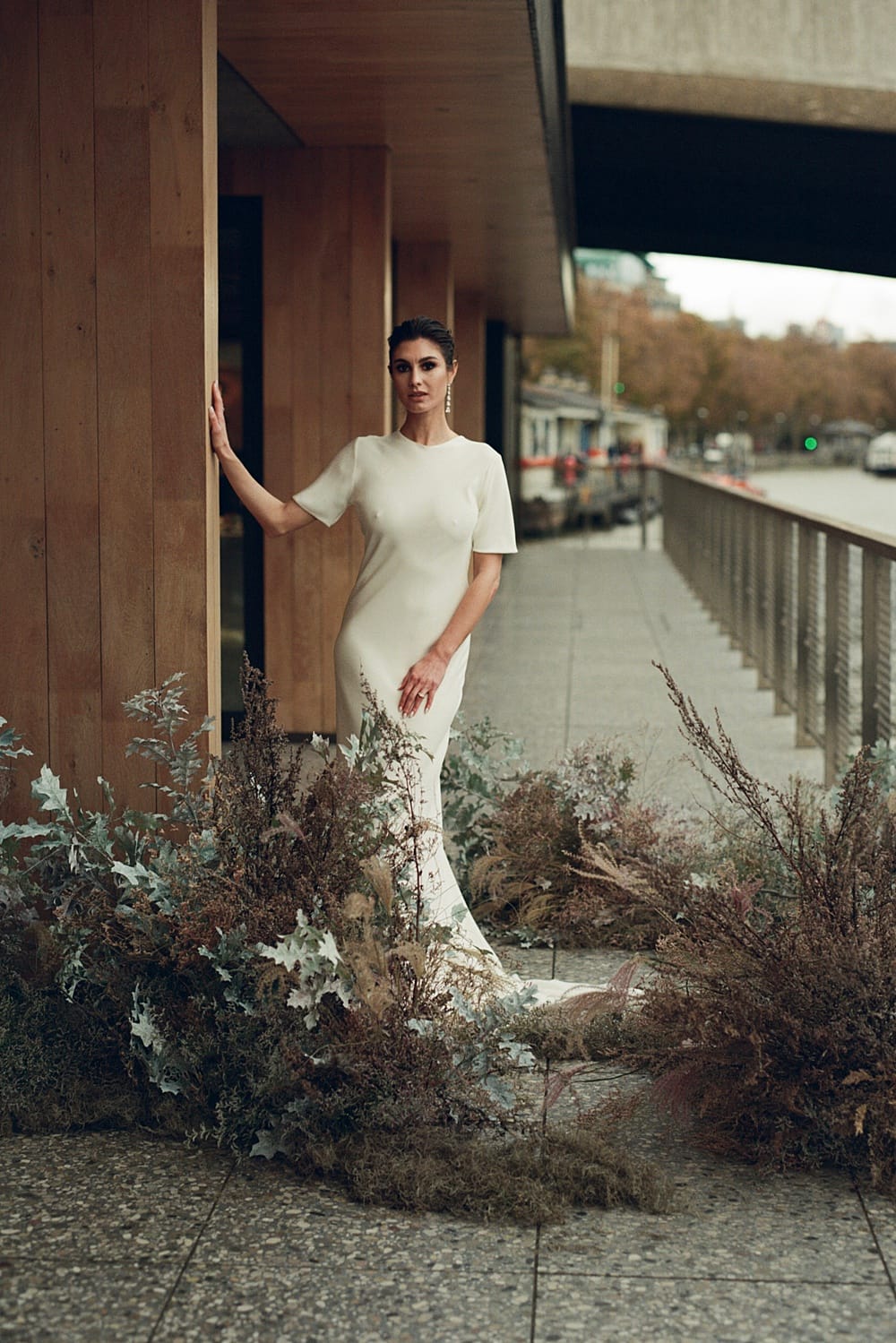 We decided to focus on a female model for this shoot, showcasing a powerful, strong and confident individual. There were three bridal looks in total, which featured modern and minimalist gowns designed by three independent bridalwear designers; A La Robe, Harriette Gordon and Bon Bride. All three designers are featured at the new and desirable Staffordshire-based bridal boutique, Amare, and had been carefully selected specifically for this editorial. It was important to have a fashion-led look, in order to appeal to fashion-forward brides looking for more of a stylish, yet beautiful modern city look for their wedding day. Each look was then finished with bespoke pieces from London-based fine jewellery designer, Gemima.