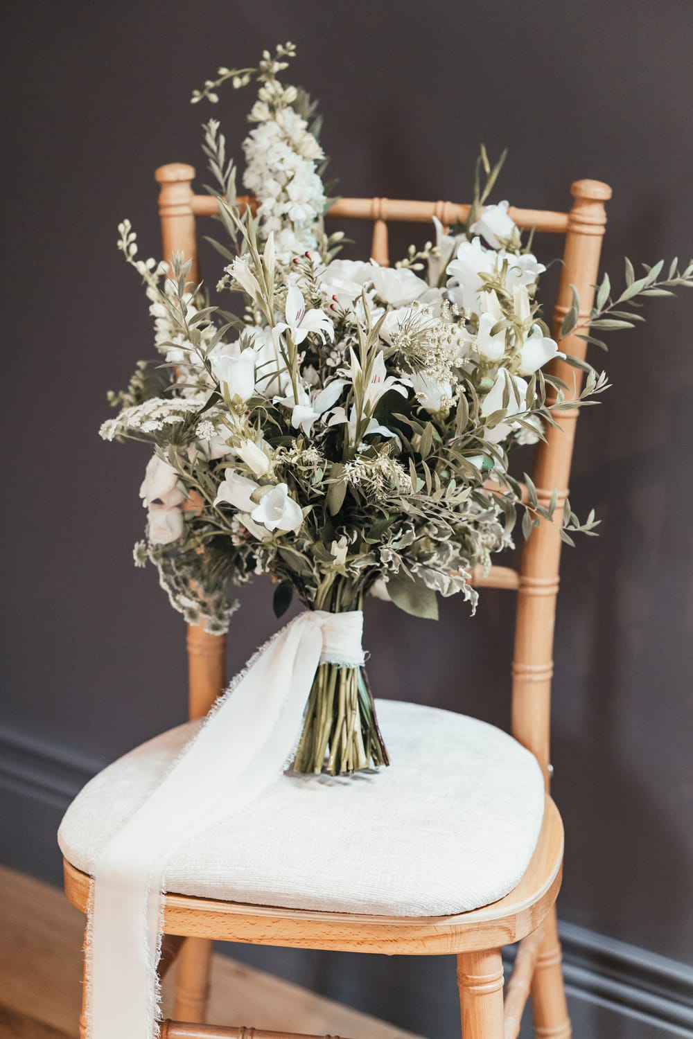 My dress was a simple yet elegant creation by Suzanne Neville from Ellie Sanderson in Woodstock. My bridesmaids wore timeless navy dresses, each tailored to them and purchased from Rewritten. We opted for a natural makeup look, and Mark Blake worked their magic on the bridal party’s hair, adding elegance to the overall look. The groomsmen wore navy suits to match the bridesmaids, while Tristan stood out in a lighter suit tailored to perfection by Edit Suits.