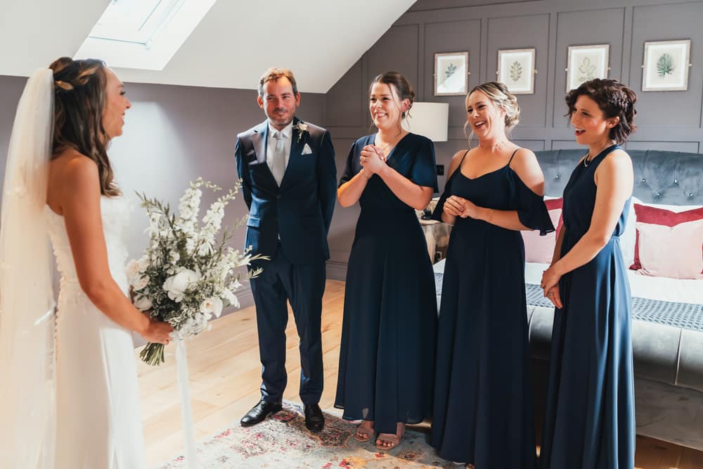 The menu for canapés, the wedding breakfast, and midnight snacks was incredible. Our friends and family were treated to a culinary journey! Water’s Edge’s chefs prepared a fantastic feast. We savoured dishes like Heritage tomatoes with Burrata and quinoa, a crayfish and crab cocktail, a Cotswold Duck salad, and an array of main course options.