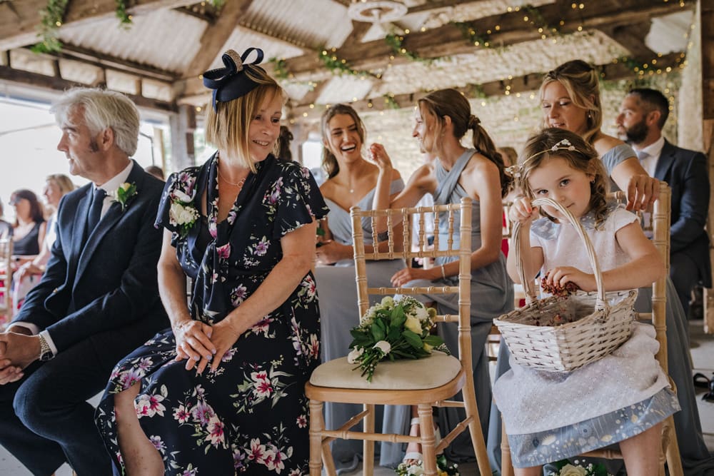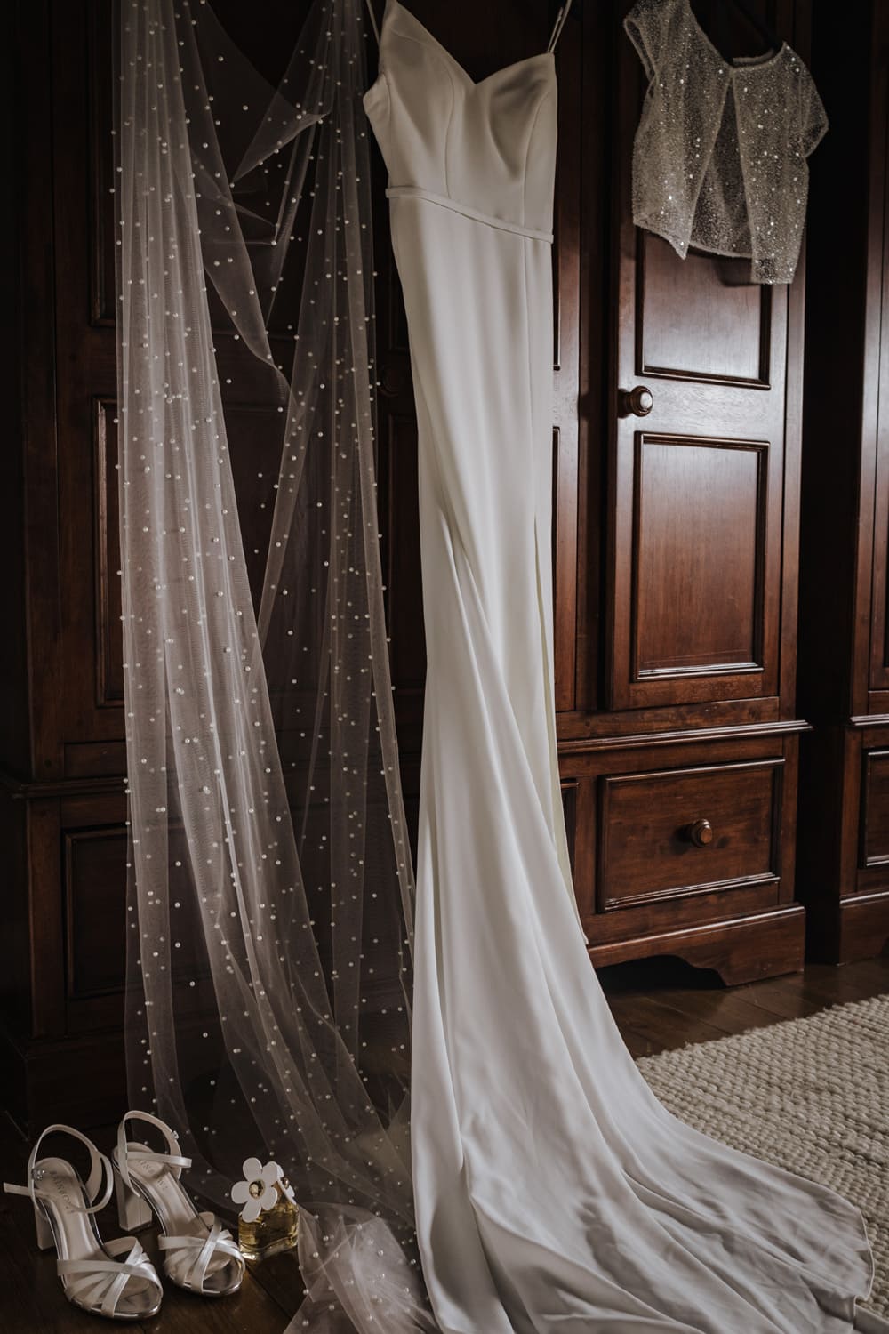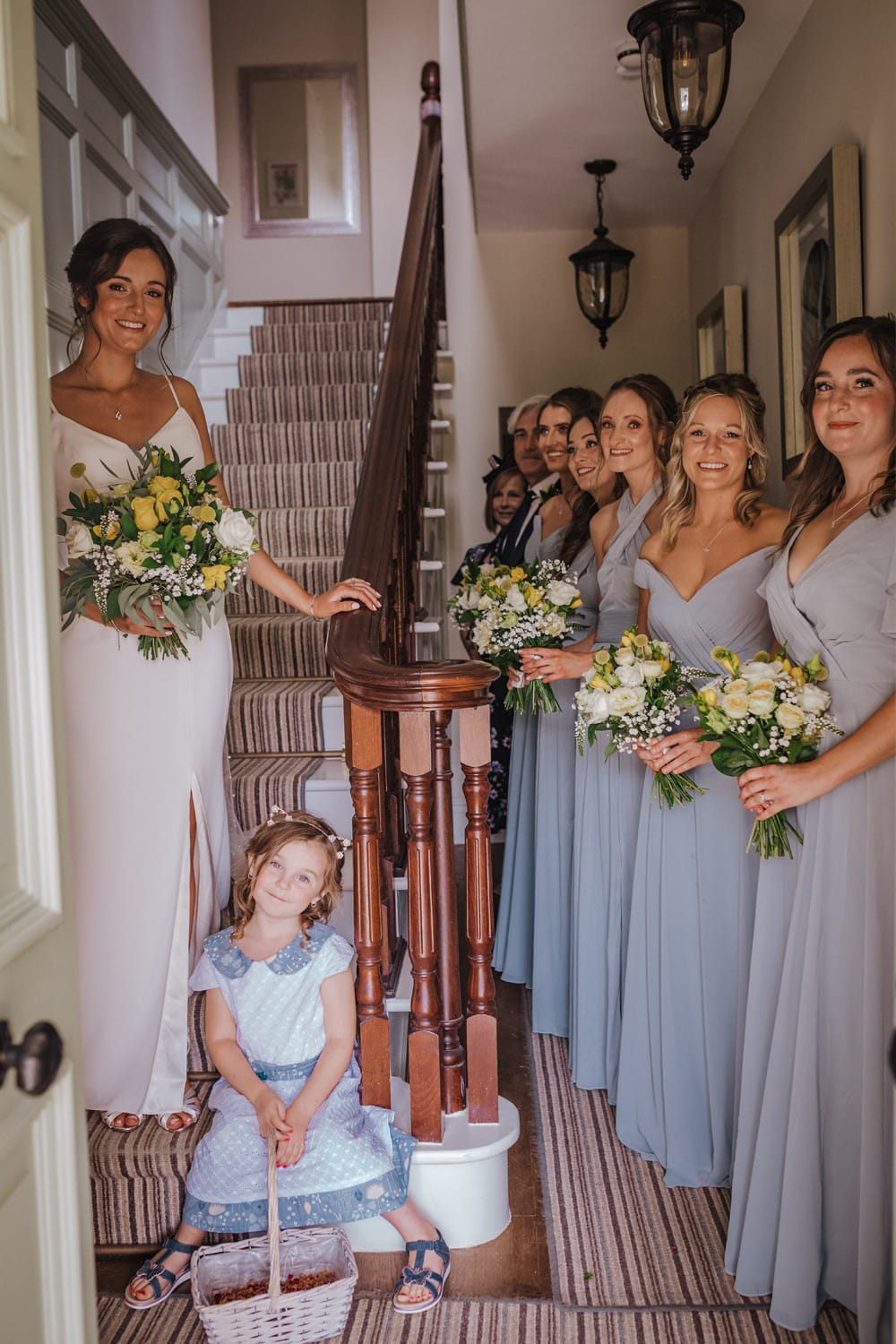 My plan was always to have a simple dress that I could accessorise, so I chose the Luna dress from Love Story Bride with a glittery top to go over it for the evening. I didn’t want a veil, so I opted for a pearl cape from an independent store called Blossom and Bluebird. Mine and my bridal party’s hair was done by amazing stylists from Scotts Hair in Ventnor and we were so happy with it, everyone opted for different and individual styles. We all did our own makeup, and I really enjoyed that we all got to sit together around the dining table at East Afton doing our makeup in our matching pjs on the wedding morning!
