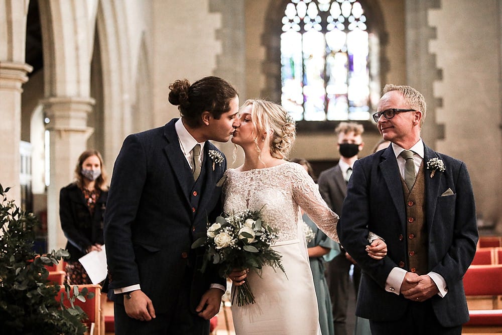 My husband George did amazingly well to keep a cool head in the mad rush to plan for our new date, I’m not sure what I would have done without him. As soon as I saw him at the alter, I knew I could breathe, relax and enjoy the day together. George wore the gorgeous ‘Southwold Blue’ suit from The Vintage Suit Hire, the company were great and got all the suits sorted in no time for our new date!