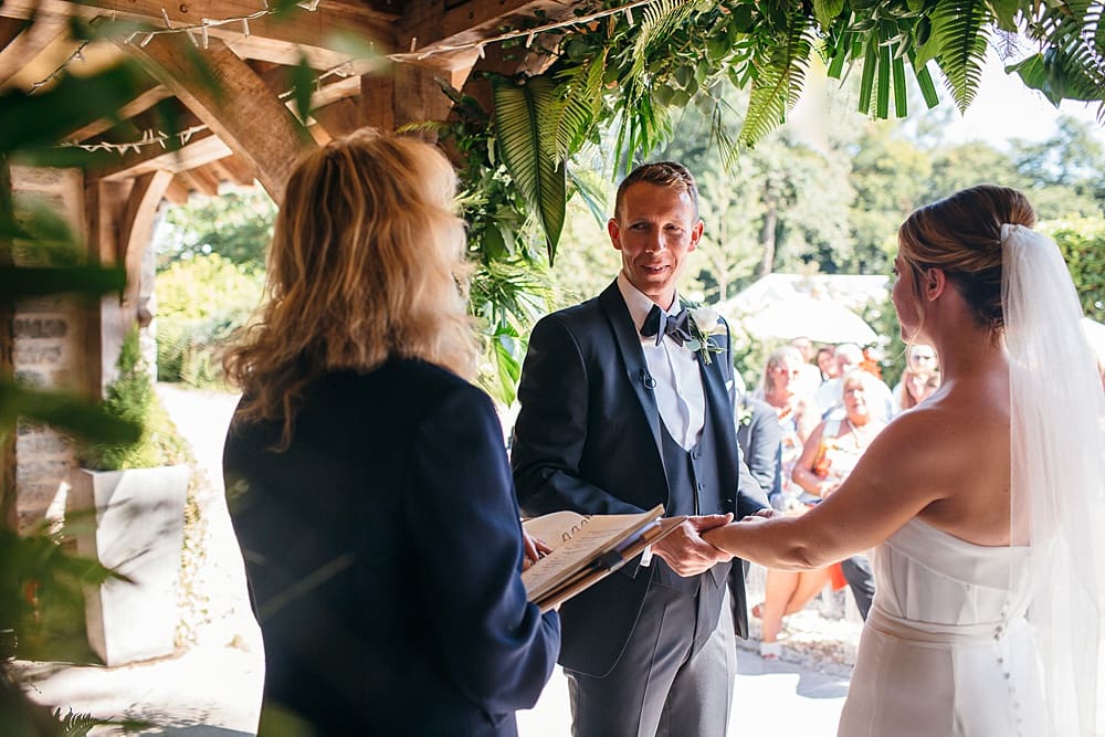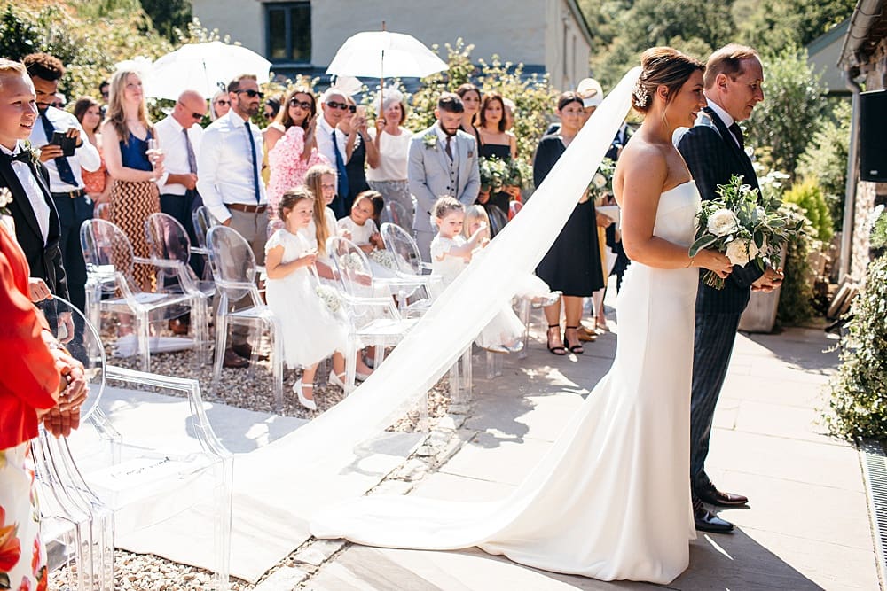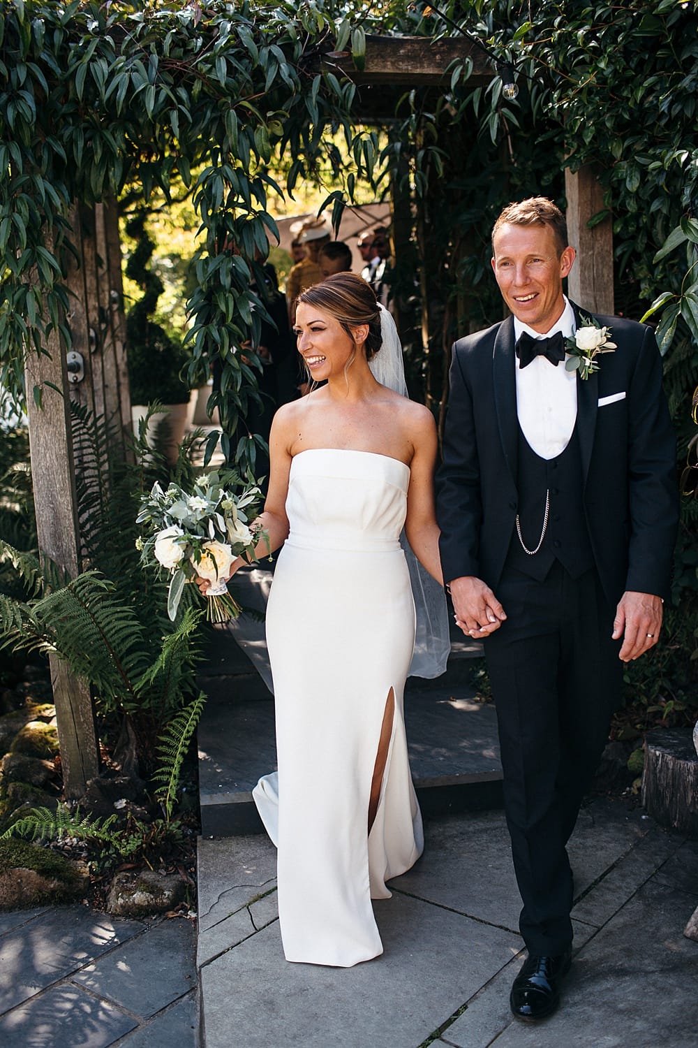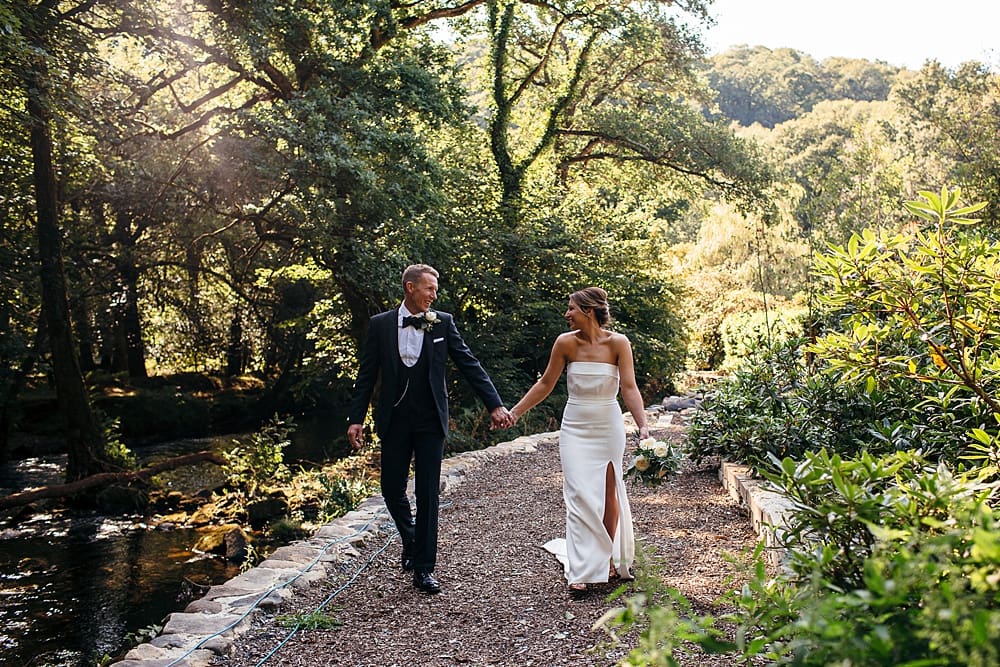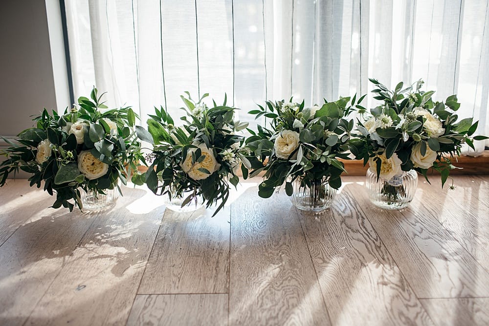 Our florist was Dartmoor Flowers. Deborah was fantastic. When a bride says “I don’t want flowers, I just want foliage” I’m sure a lot of florists would have run a mile, but Deborah really went with it. Richard and Deborah worked together to make sure the things he was making would work for her foliage displays, she suggested the wire he’d need to use for the backdrop and the depth of the centrepiece trays – we would then go about sourcing her requirements. The foliage displays that Deborah created complemented the lush natural greenery of Ever After so perfectly, and next to the black of the suits and white of my dress achieved that laid back elegance we were aiming for.