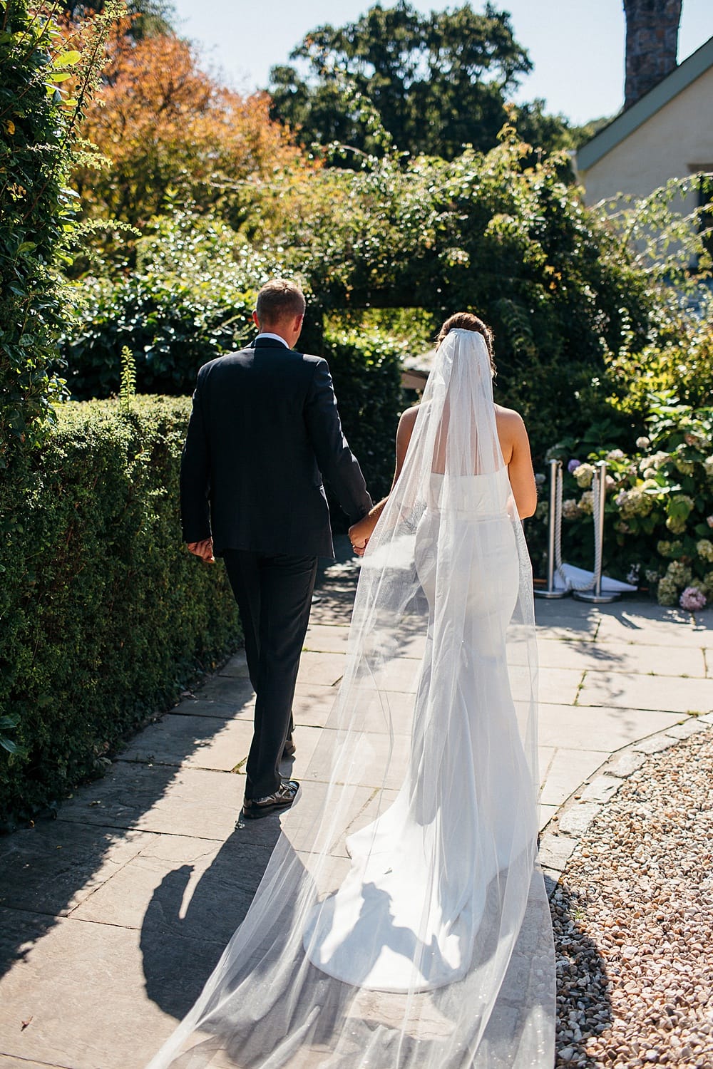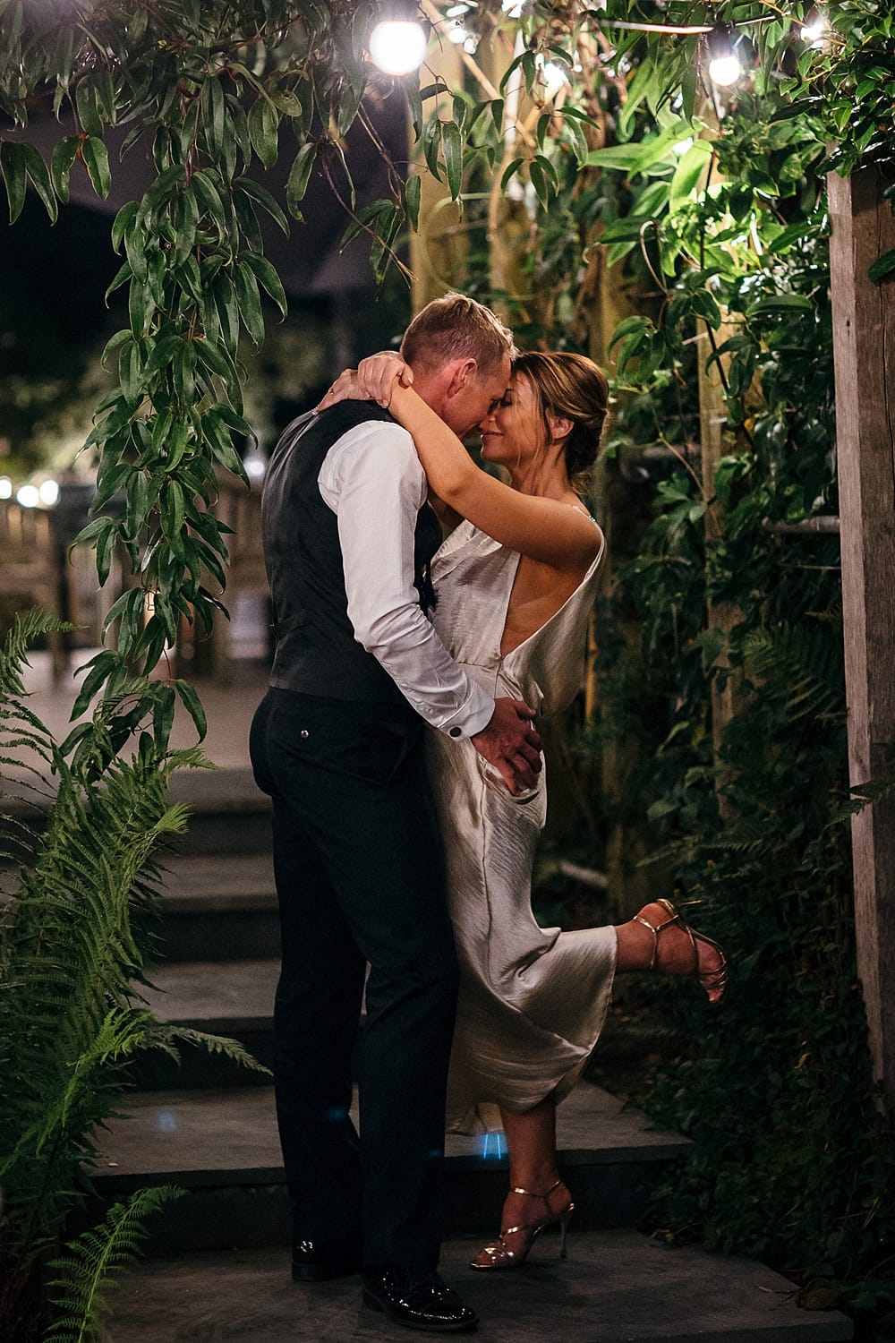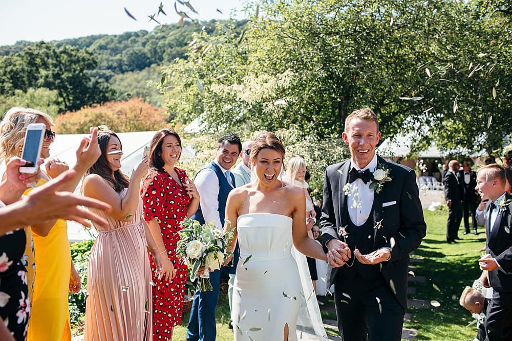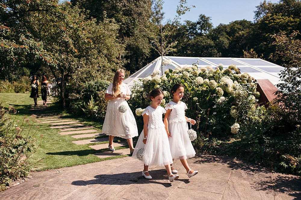 Our florist was Dartmoor Flowers. Deborah was fantastic. When a bride says “I don’t want flowers, I just want foliage” I’m sure a lot of florists would have run a mile, but Deborah really went with it. Richard and Deborah worked together to make sure the things he was making would work for her foliage displays, she suggested the wire he’d need to use for the backdrop and the depth of the centrepiece trays – we would then go about sourcing her requirements. The foliage displays that Deborah created complemented the lush natural greenery of Ever After so perfectly, and next to the black of the suits and white of my dress achieved that laid back elegance we were aiming for.