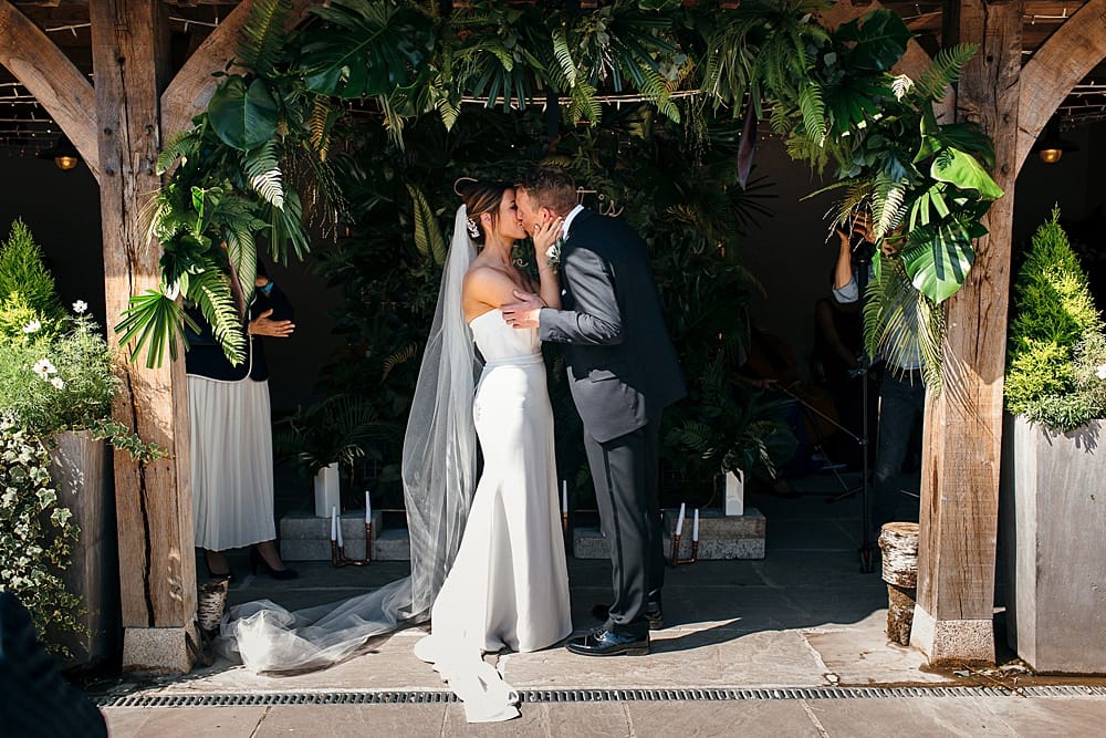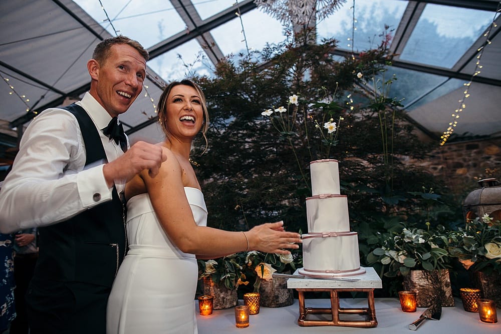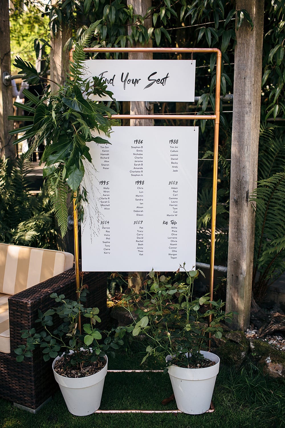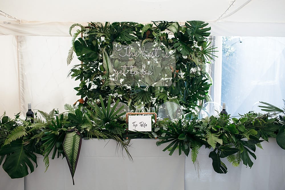 Classic, laid back elegance was the look we were going for and details were key for me – every “guest touch point” was considered (can you tell I’m a marketeer?). Pinterest can become addictive when planning an event – you pin largescale installations without ever really considering the logistics of implementing something like that within a rural wedding venue in Devon. Thankfully, Richard is a builder by trade and honestly brought my Pinterest board to life! Everything I showed him he set about recreating, from the copper stands and centrepieces, to the personalised remembrance plaques to the amazing neon sign that formed part of our fabulous foliage backdrop. He even made our cake stand and fabulous copper candelabras that now sit pride of place on our dining table at home. Everything felt so bespoke and it all came together exactly as we’d hoped.