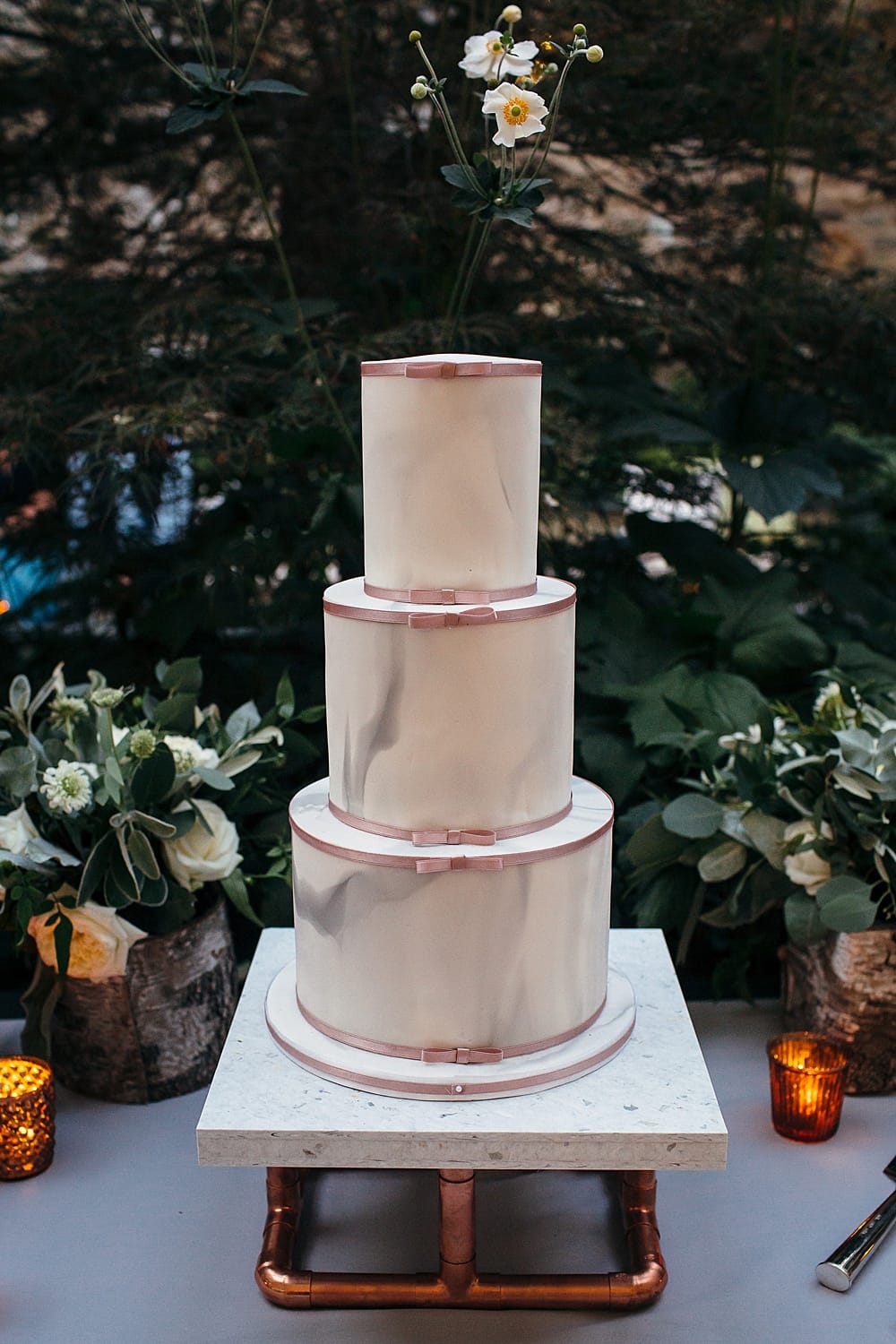 The cake was made by Cut Me Off a Slice – it was 3 tiers and each tier was a different flavour, Cookies and Cream, Victoria Sponge, and Lemon. It was delicious. The design was very simple, just a marble effect with a rose gold trim – it went perfectly with the copper cake stand.