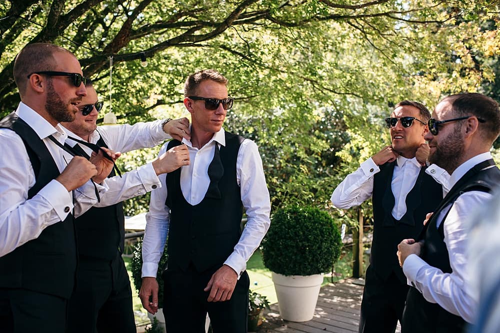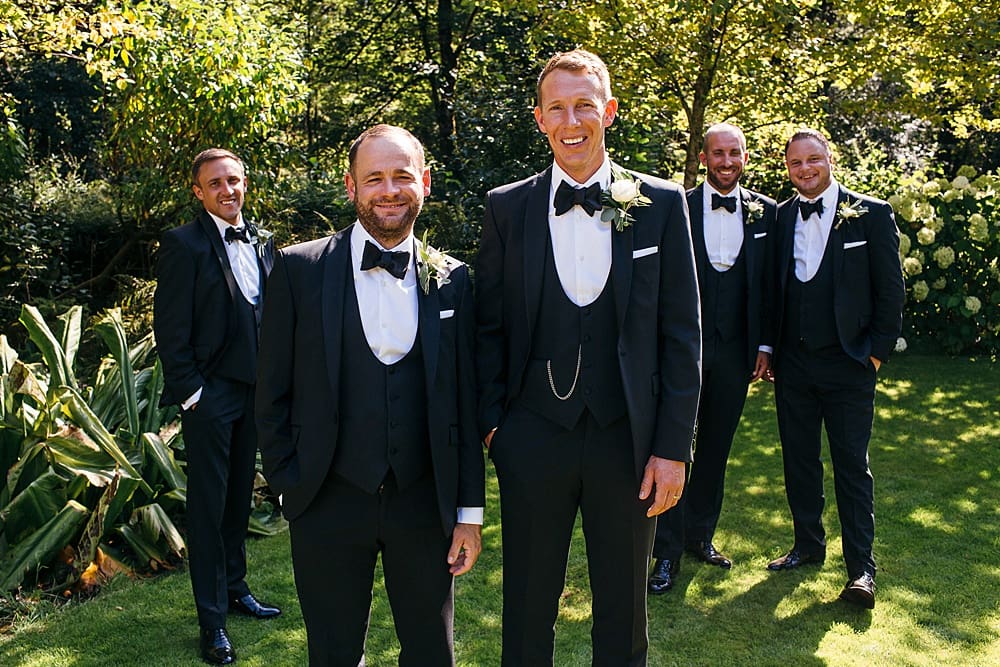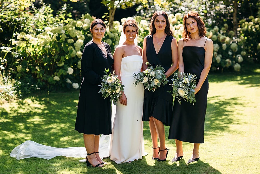 My bridesmaids wore black – not a traditional wedding colour I know, but I love the contrast between black and white and thought it would make the pictures look really classic. The flower girls and junior bridesmaids wore dresses by Angel and Rocket in style “Lucy lace.” Richard and his wingmen all wore tux’s – again probably not a traditional choice for an August wedding but i just knew they’d all look so handsome – everyone calls Richard, Dickie, so I love that he got to wear a Dickie bow on our big day.