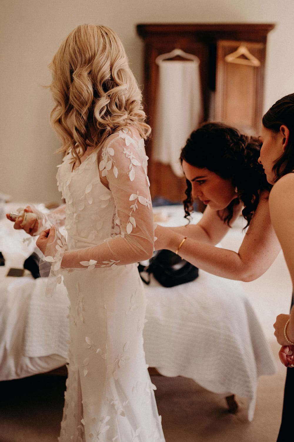 I wanted an elevated version of my usual ‘look’ for hair and makeup – hair down, wavy, slightly smoky eyes and a natural face. I did have a couple of trials to get the look right, with Alyson Peacock managing to fit me in twice before the day itself. She and her assistant created a fun atmosphere in the bridal suite in the morning, with the bridesmaids having half-up, half-down hair and fresh, dewy makeup.