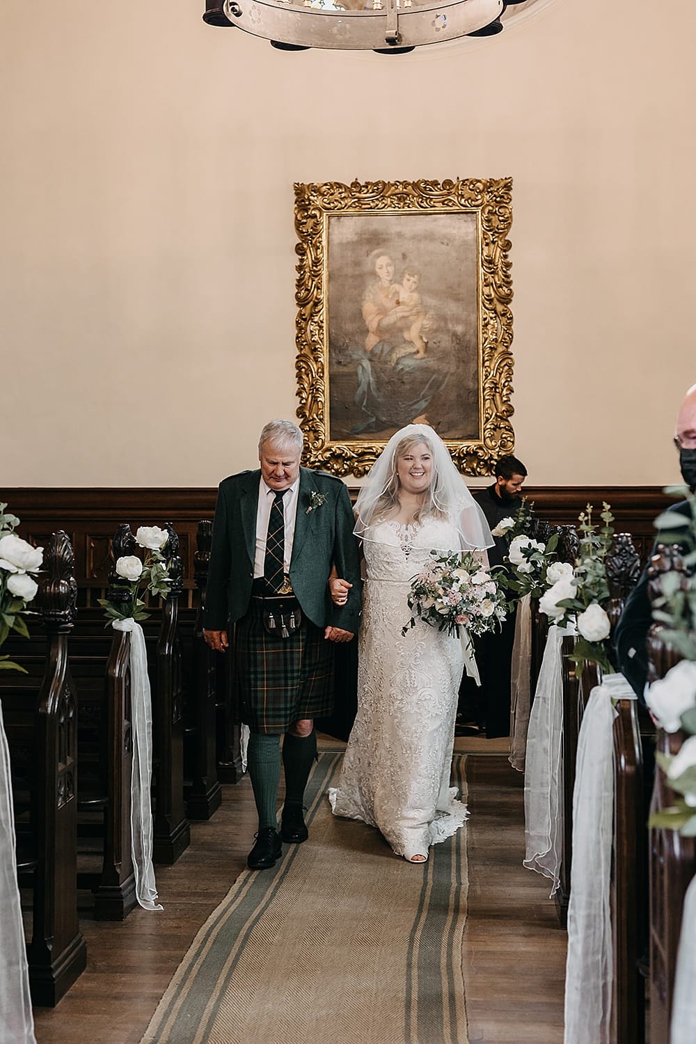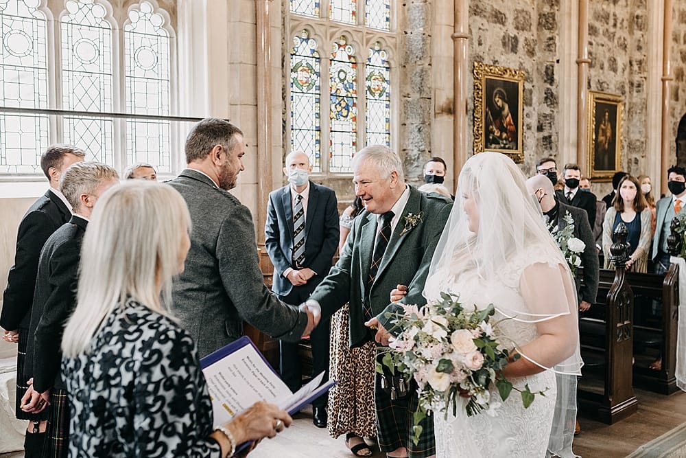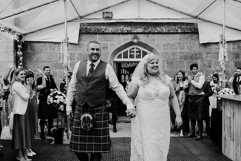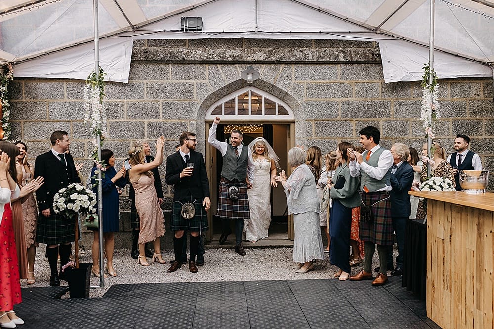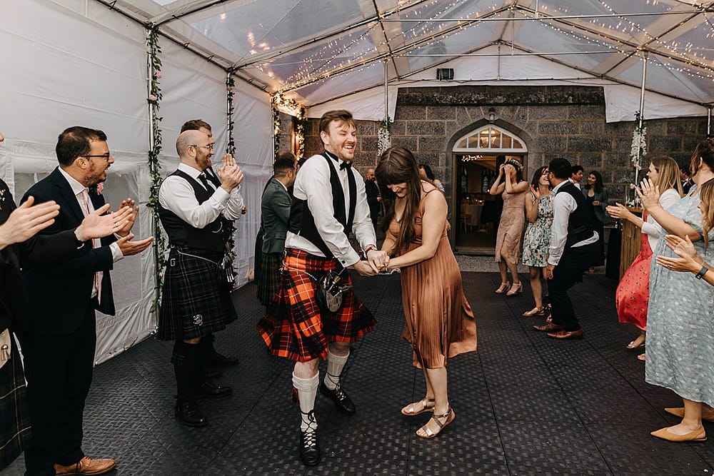 Of course the best part of the day was marrying my best friend in the chapel of dreams. The groom’s family couldn’t attend because of the pandemic, however we live streamed the wedding to family and friends all over Scotland, in Berlin and Australia. We loved that we had a marquee set up just outside the Tenants Hall – this meant we could have the evening buffet indoors and the bar and dance floor outdoors.