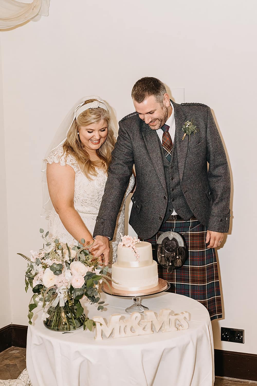 I bought my dress by designer Studio Levana from Love Bridal in London and we sourced Rick’s kilt attire from Georgian Dress Hire in Aberdeen.
