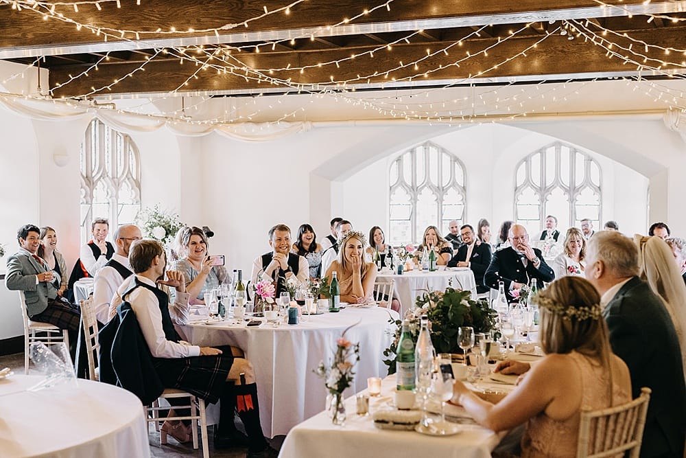 Inside the castle is full of history, beauty and charm, yet still feels homely. The chapel is quaint and absolutely stunning, the only place you can imagine exchanging vows once you have seen it. Going down to the Tenants Hall there are stained glass windows, a beautiful fireplace and fairy lights adorning the ceiling creating a wonderful ambiance when hosting your wedding meal.