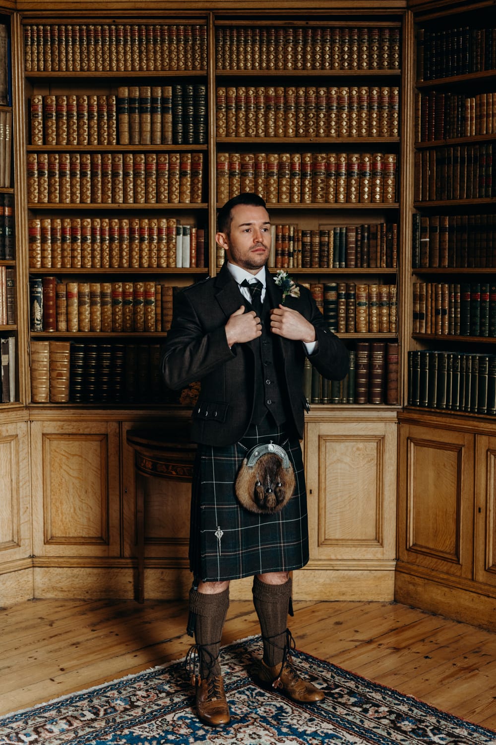 Local kilt supplier Mitchell Scott kindly supplied the kilt for the shoot. We opted for the Hebridean Glisk tartan partnered with the Brown Crail jacket, which looked great on our model Ross.