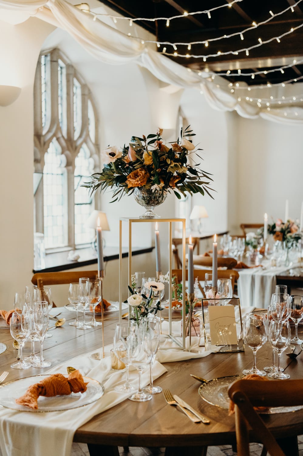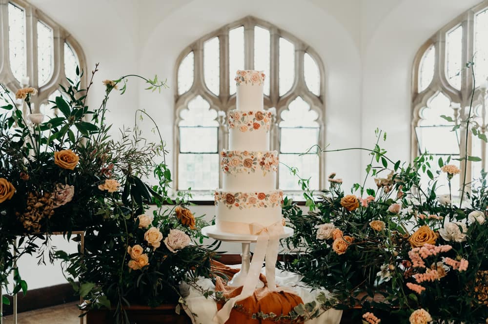 We hadn’t hosted an open day/showcase event since just before the first lockdown in 2020, so we wanted to make this one super special. We wanted to create something different to anything we had seen before, so we decided on a ‘when Spring meets Autumn’ theme. Using beautiful, rich, warm tones of terracotta, rust and blush, which complement the castle so much, alongside airy elements, created a fresh, spring-like and delicate feel to the day. It was the perfect combination of Autumn warmth and Spring freshness, bringing everything together beautifully with all the warm, cosy, romantic vibes.