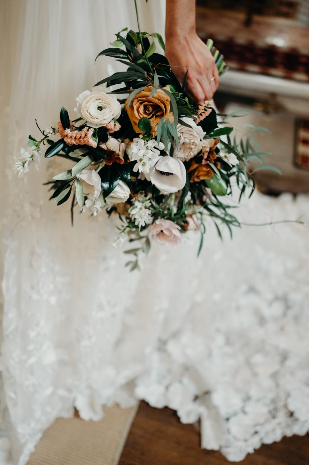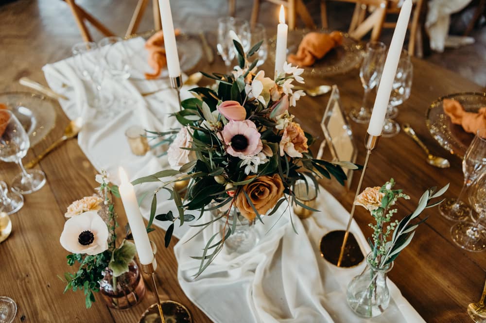 Lorna from Sakura Flowers did the most fantastic job of bringing my vision to life and nailed the brief. Autumnal warmth lifted with beautiful light and fresh greenery to give it that Spring feel; it was March, after all, so I wanted to emphasise that. It was a challenging task for her, given the limitations on sourcing fresh, sustainable, local flowers at this time of year (something at the heart of Lorna’s ethos and business principles). Still, she managed to pull it off in epic style.