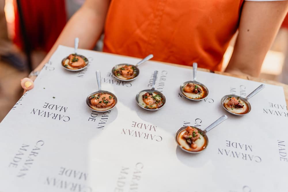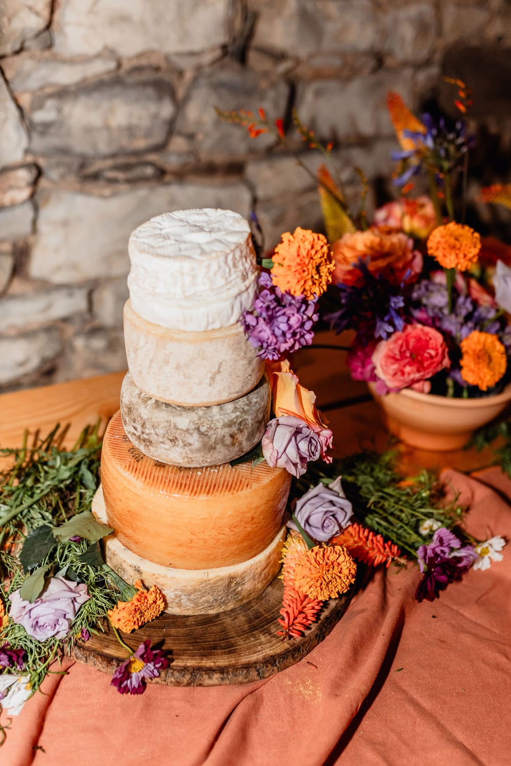We exclusively work with Caravan Made as our caterer for all weddings hosted here. Their food is incredible, but they are also stylish, professional and amiable, and we work together as a team to ensure every event here is perfect. We are well used to couples and their guests telling us that their food and service are the best they have ever experienced at a wedding, and they excelled at our wedding, too. Our guests were incredibly complimentary. As for the cake, we chose a cheese cake – made of wheels of actual cheese! We only saw it in the photos, though, as by that time, we were away dancing, but it looked fabulous, and the bits of it we ate the following day were delicious, too!