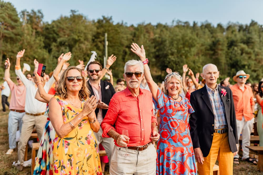 We entered our ceremony together to the sounds of ‘Caravan of Love’ by the Housemartins. We had prepped Oscar Marimon, our fave DJ, to ensure there was plenty of sound as we wanted to immerse our guests in it (and the preceding carefully chosen songs). However, we were quite taken aback to see all our friends and family on their feet, singing and swaying along to ‘Caravan of Love’ as we approached. Such a moment!