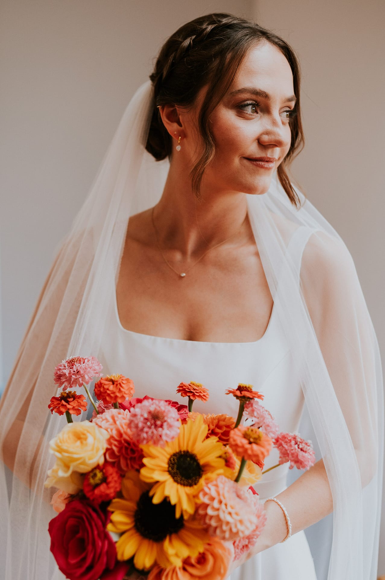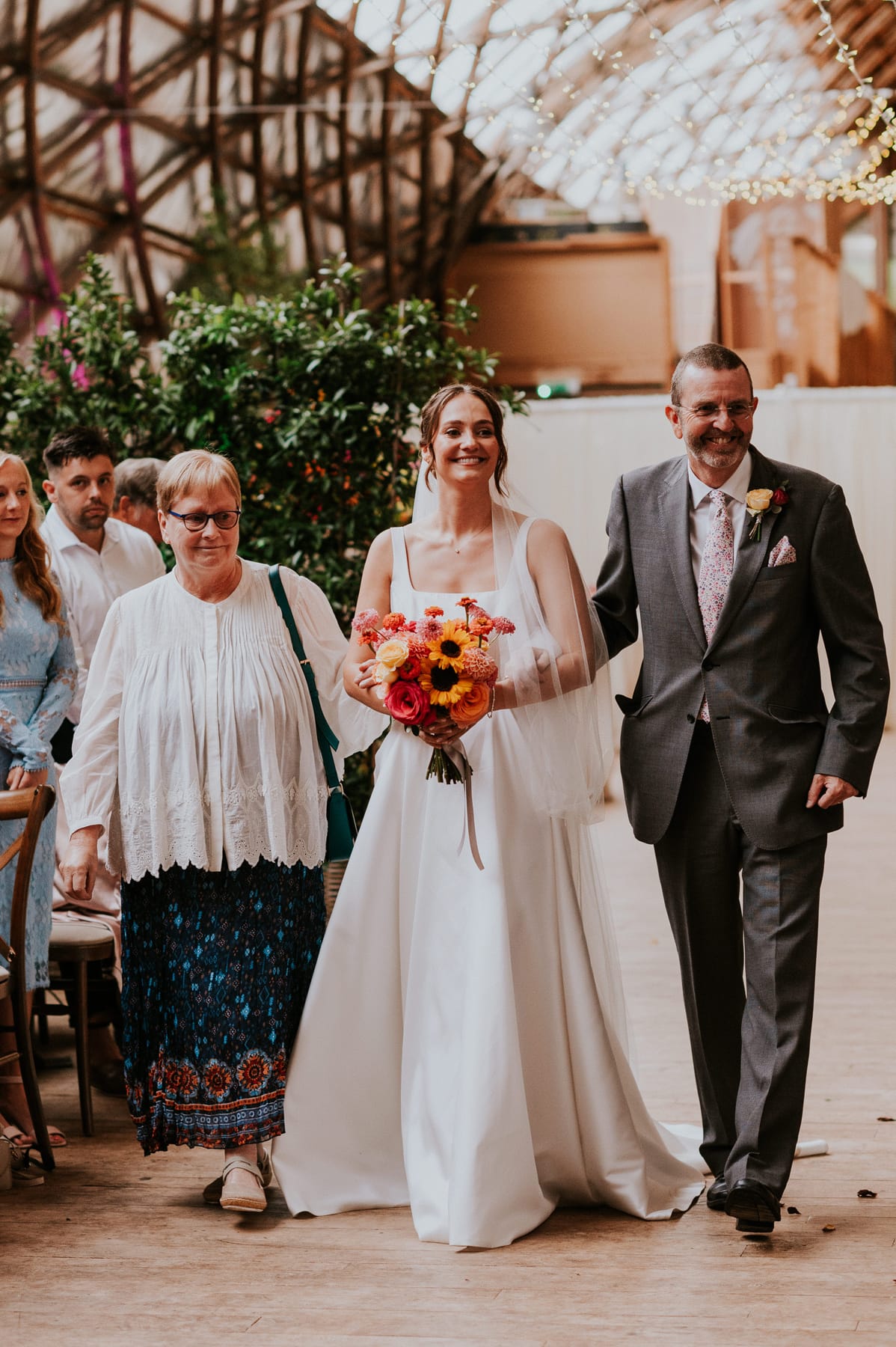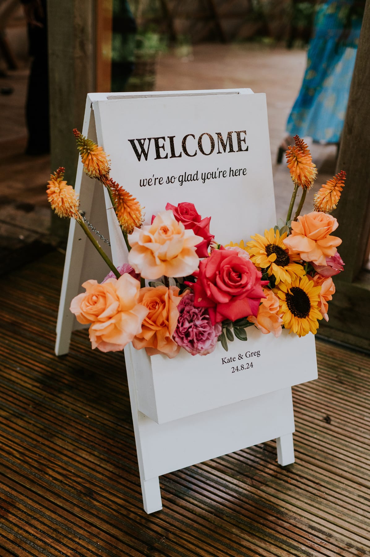 We were fortunate enough to find the incredibly talented florist, Charlotte from Frankie Lane Flowers, who created brilliant and beautiful flower arrangements for our special day. Many guests commented on how unbelievable all the flowers were and what a difference they made to the venue, which looked incredible. They brought everything together and made sure that every corner was filled with sunset vibrancy. We would (and have!) recommended Charlotte far and wide! She even added some beautiful little touches, like growing sunflowers for Greg’s buttonhole to match the bride’s bouquet.