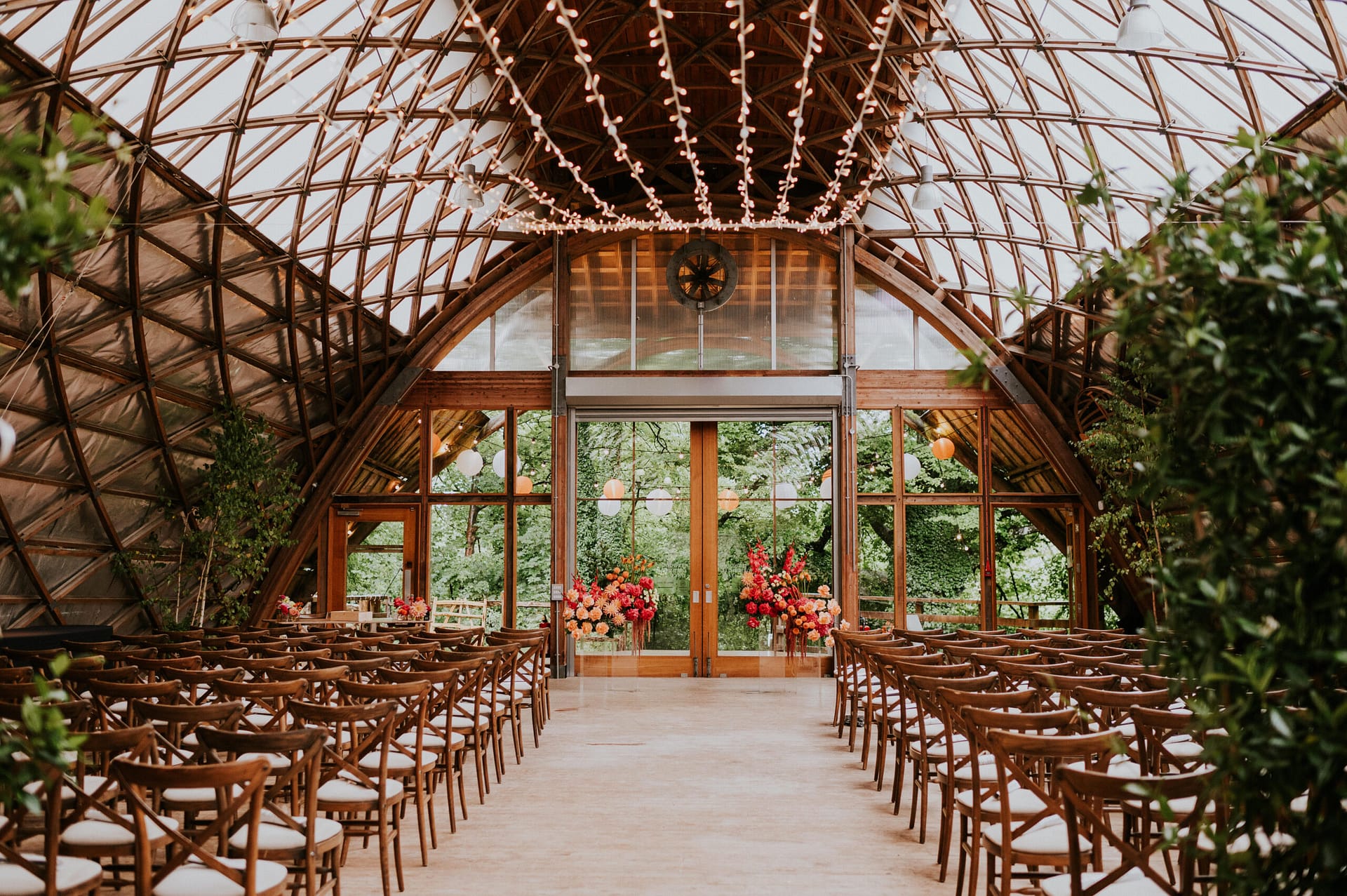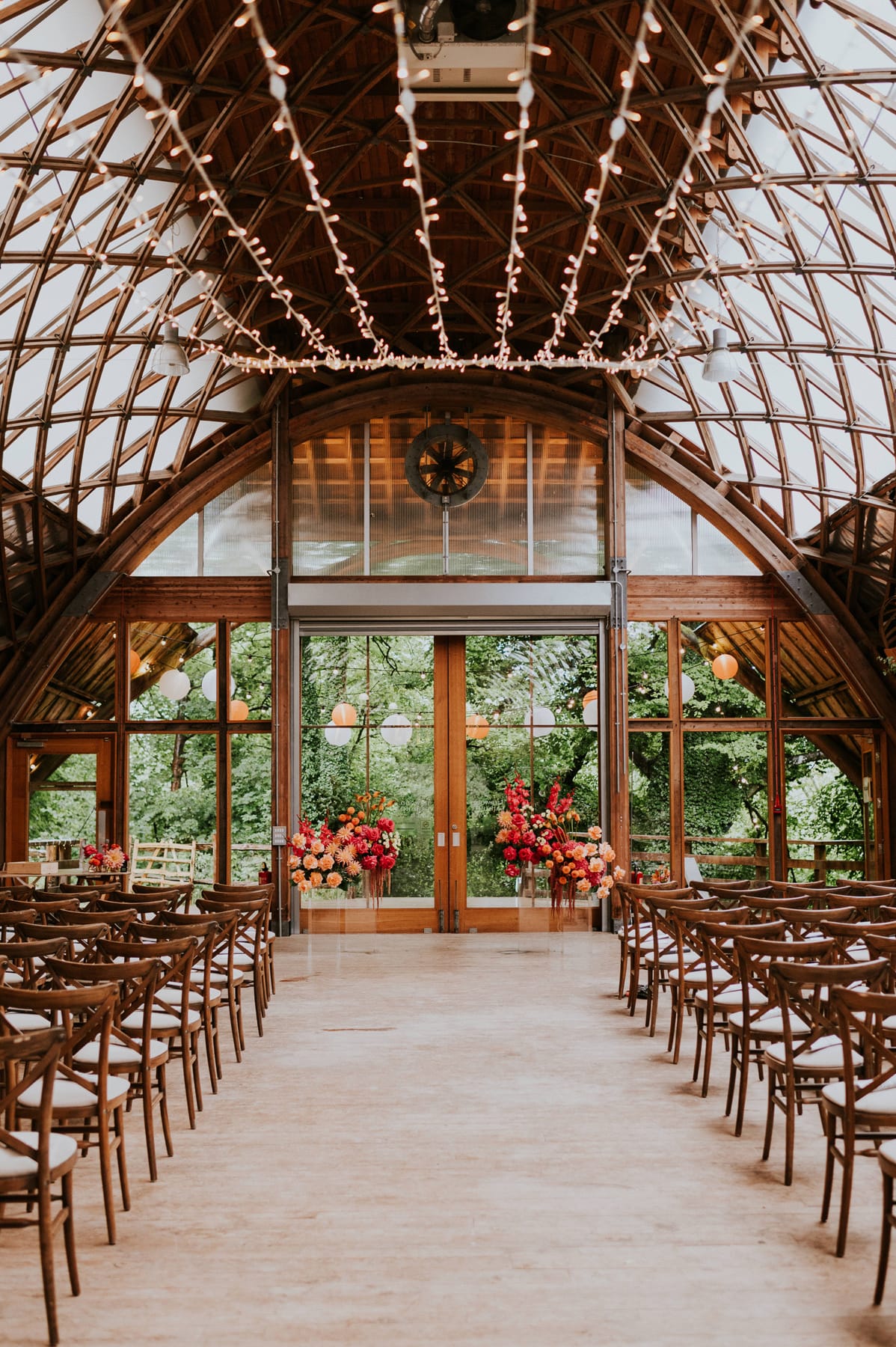 We hired some beautiful trees from Cloud Tree Events as a nod to the stunning natural surroundings of the venue and to separate the dance floor from the dining area. We also hired fairy lights, which were strung up on the gorgeous elevated ceiling by To Have & To Hire, who also strung up some lanterns outside as a nod to our travels and favourite country, Vietnam.