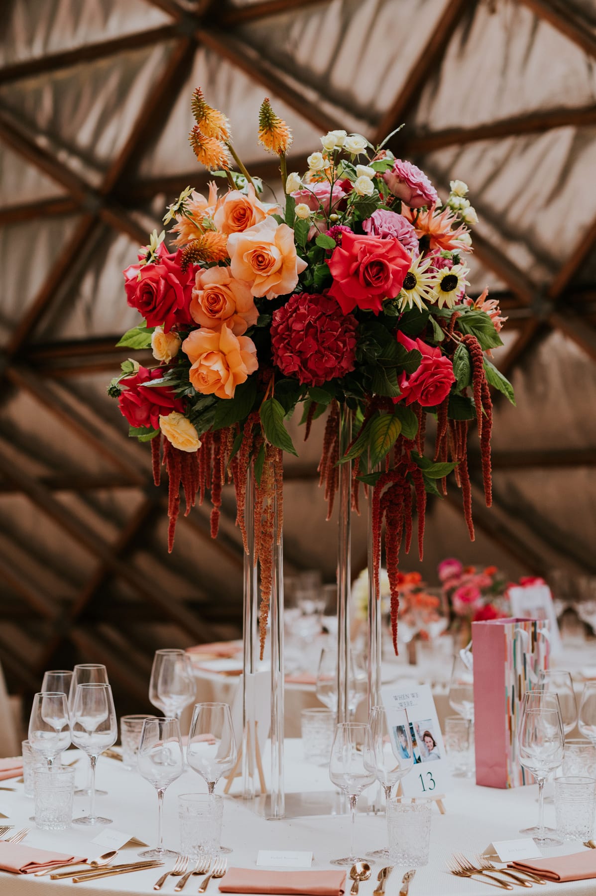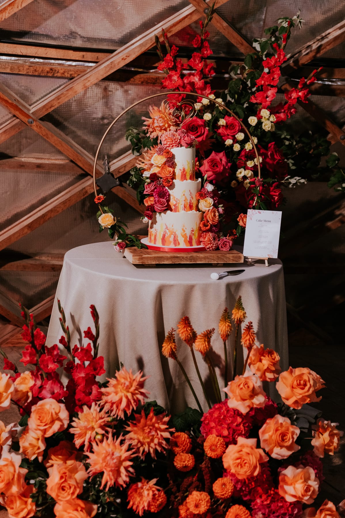 We knew we wanted our wedding to be distinctive and unique. We knew we wanted something a bit ‘different’ that was vibrant and exciting. The venue was already so unique, so we chose a lively, radiant colour palette, and settled on a sunset-themed colour palette to fill the gorgeous, grand space.