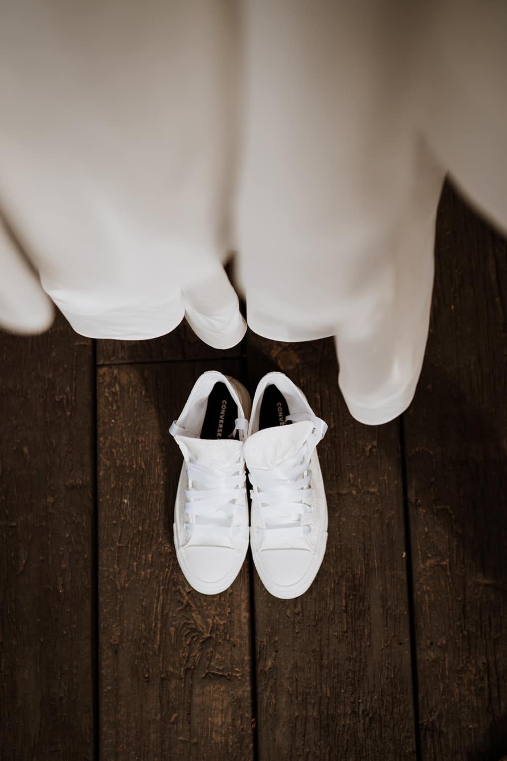 Neither of us are your typical fashionistas but we were determined to dress and accessorize exactly how we would like, traditional or not. I chose a stunning two piece gown by Catherine Deane that was bridal enough to make me feel special but original enough to make me feel me. I was definitely going for comfort and had bridal Converse trainers made so I could dance the night away without blisters! And of course a hand-painted jacket for the chilly afternoon/early evening out on the terrace – unique and personalised, it was perfect.
